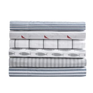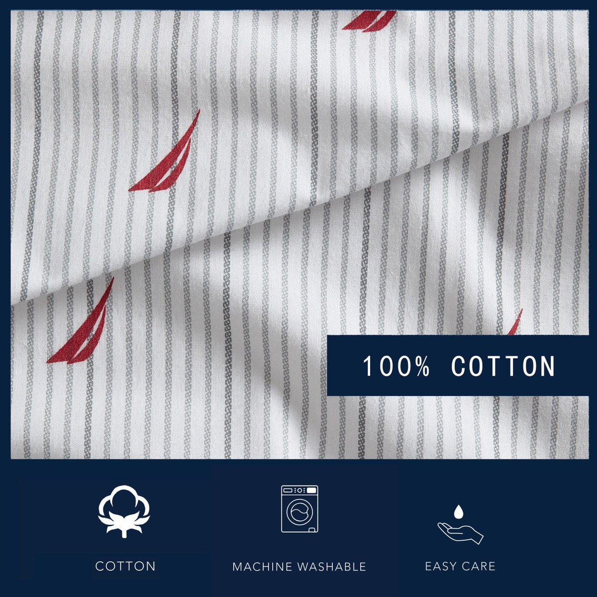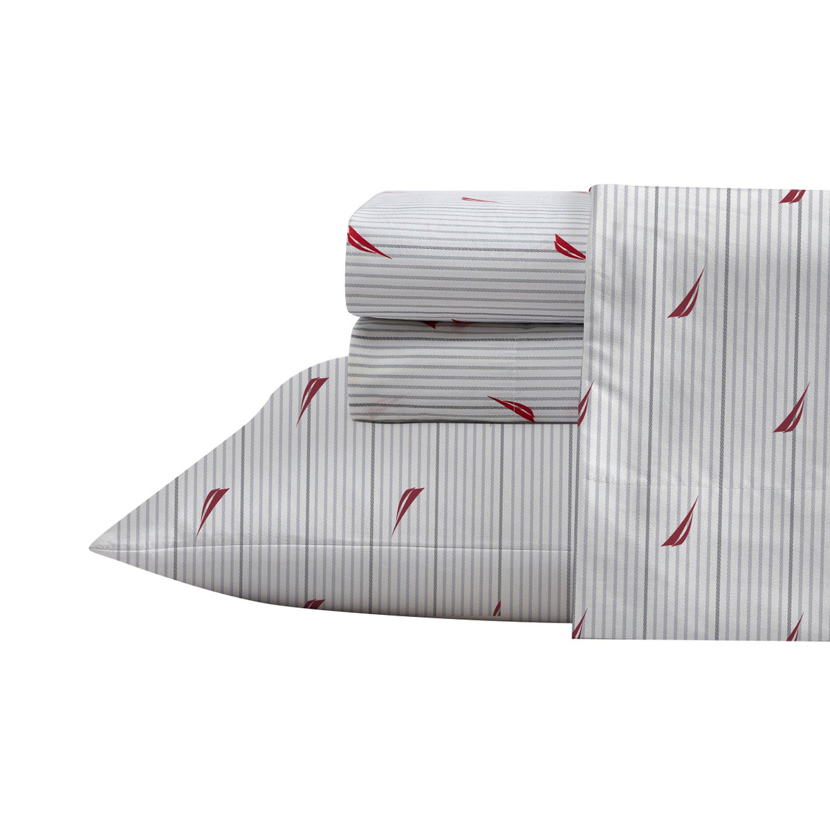 Add a playful touch to your bedding with the Nautica Audley Stripe Sheet Set. Featuring a fun logo and stripe design, this 200 thread count cotton percale set is cool, breathable, and lightweight for lasting comfort. The fully elasticized fitted sheet ensures a snug fit, while the machine-washable fabric makes care easy.