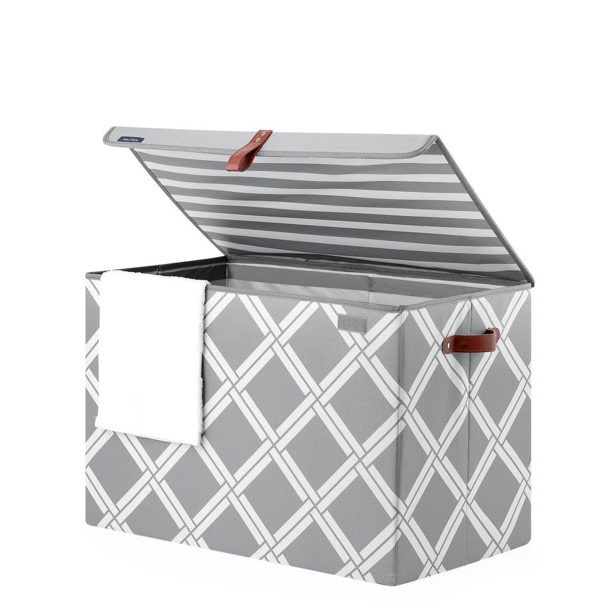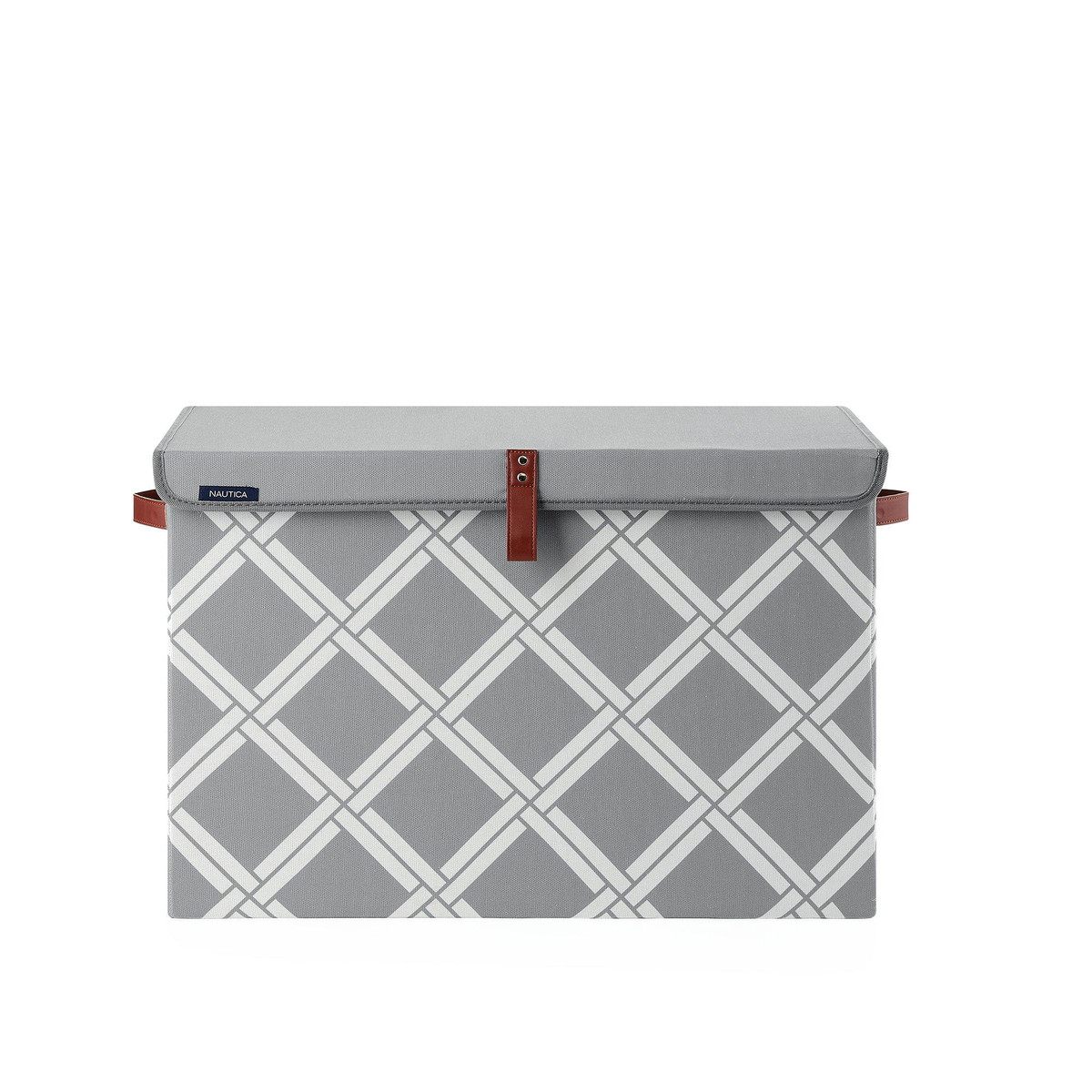 This Nautica Folding Large Storage Trunk with Lid offers a stylish and easily storable solution ideal for elevating any space in your home. This storage trunk features a lid to keep contents concealed, durable reinforced handles and a convenient collapsible design for easy storage when not in use. The Nautica branding combined with the sleek grey box weave design will blend in beautifully with nearly any décor. Easy to clean. Measures 24 in. x 14 in. x 16 in.