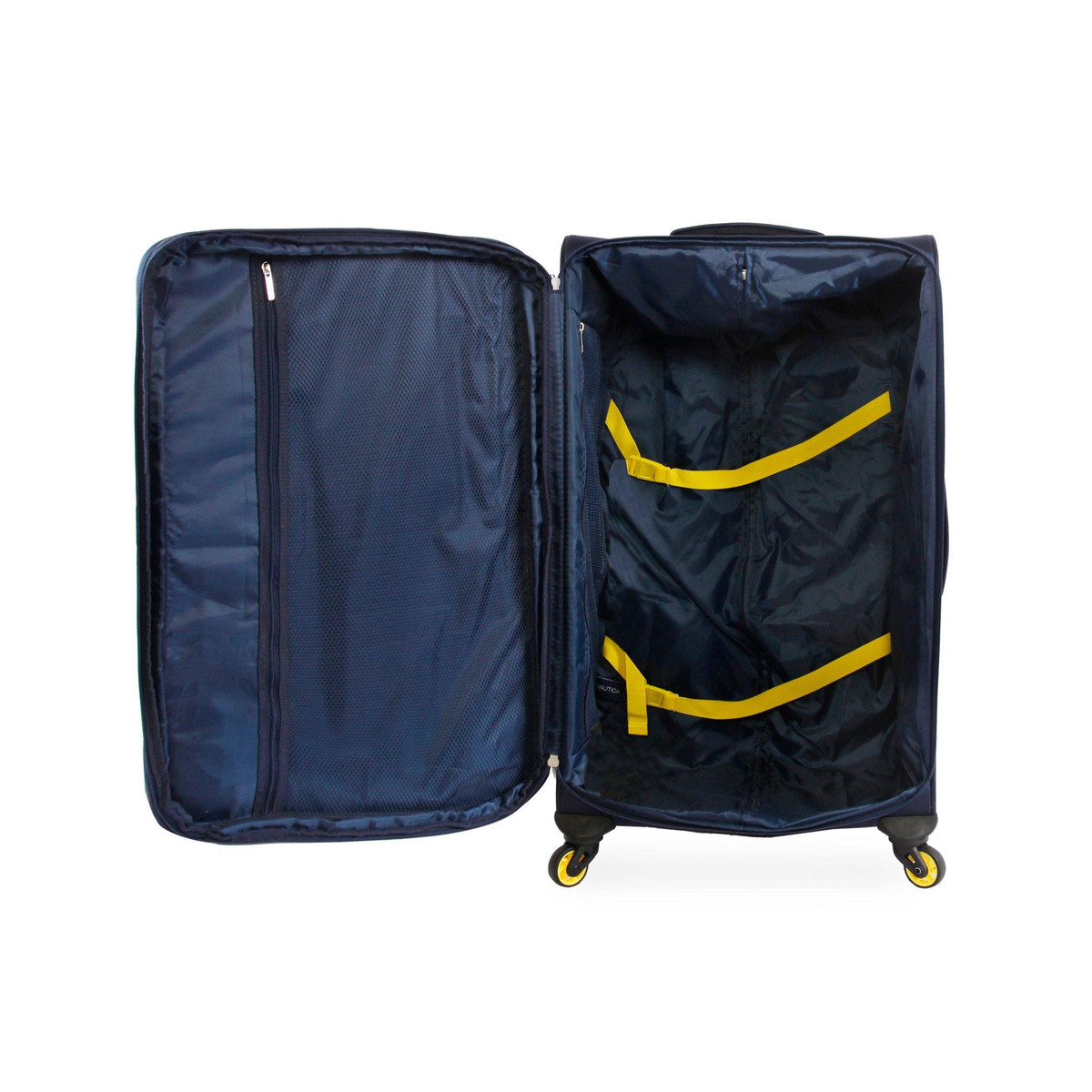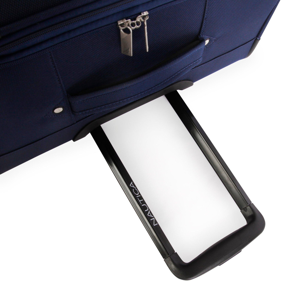 The Nautica 2-pc luggage set provides some serious packing space, perfect for short weekend getaways or for those extended vacations. This set includes a 29 expandable spinner suitcase and a 21 expandable spinner carry-on. It features an ultra lightweight, durable, easy and high density fabric. Includes push-button locking trolley handle. Suitcases measure 21 in. x 14 in. x 9.5 in., 29 in. x 19 in. x 12.5 in.