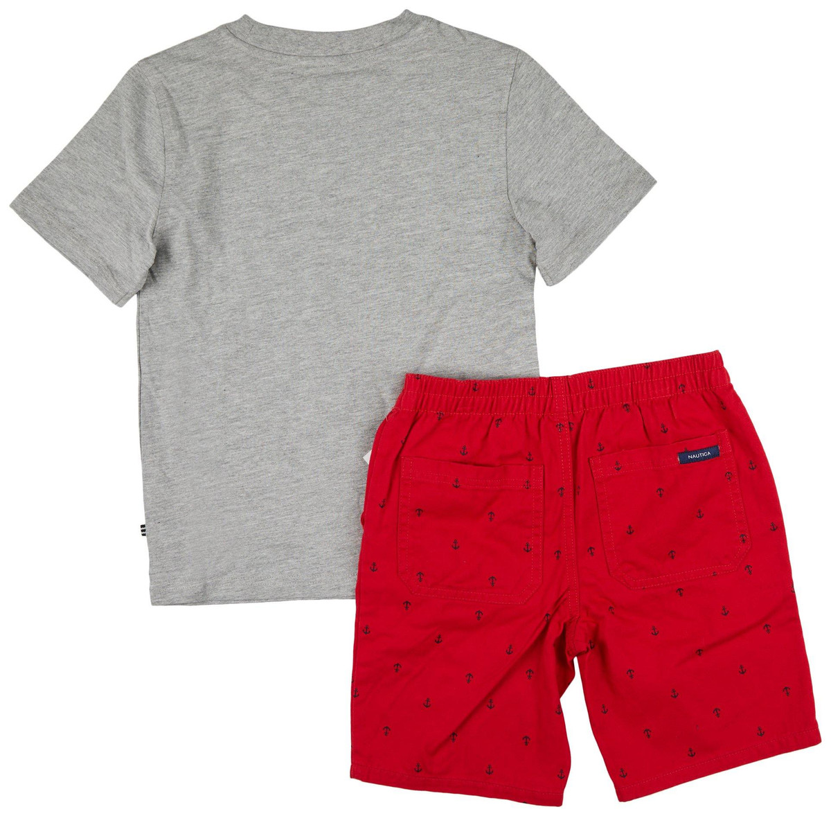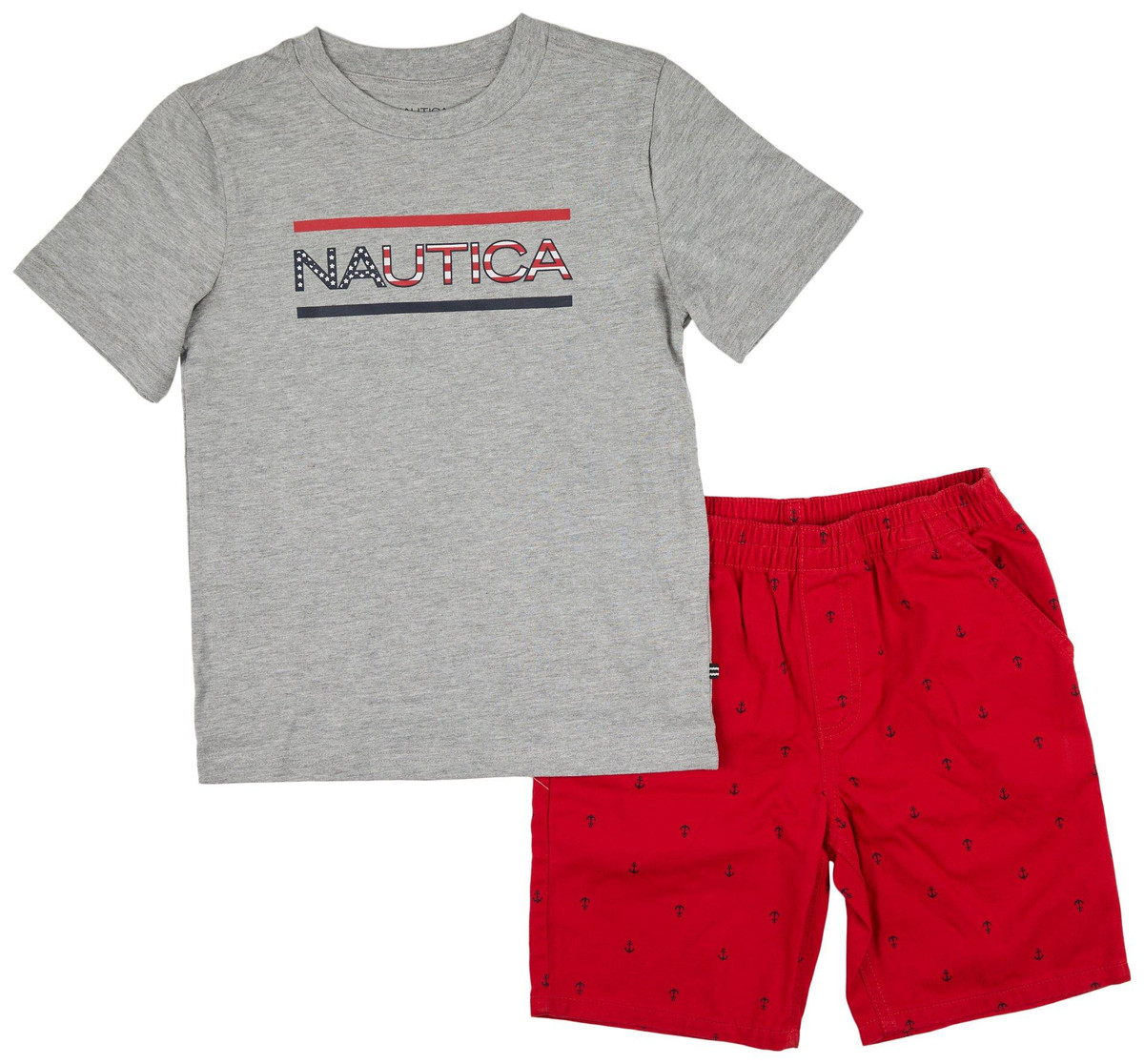 This Little Boys 2-Piece Americana Anchor Shorts Set features a soft cotton-rayon t-shirt with an Americana-inspired logo script and anchor print pull-on shorts with side seam pocketsperfect for patriotic summer style and everyday comfort.