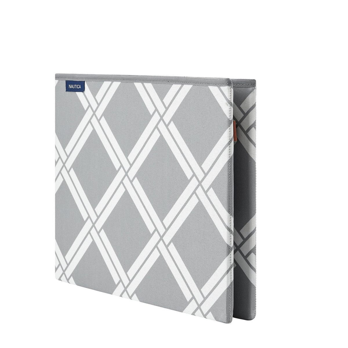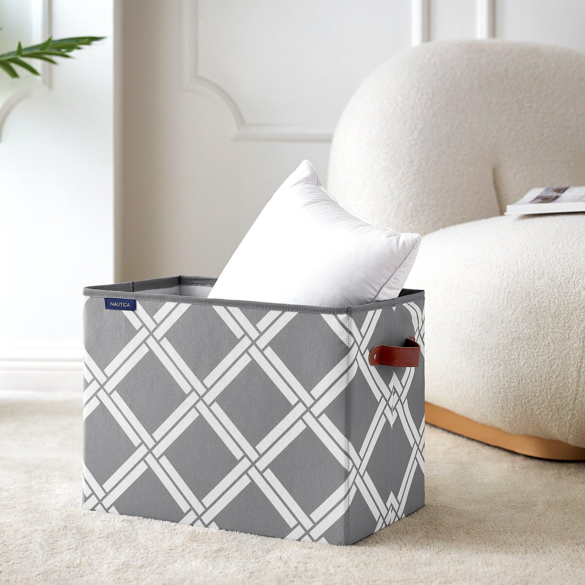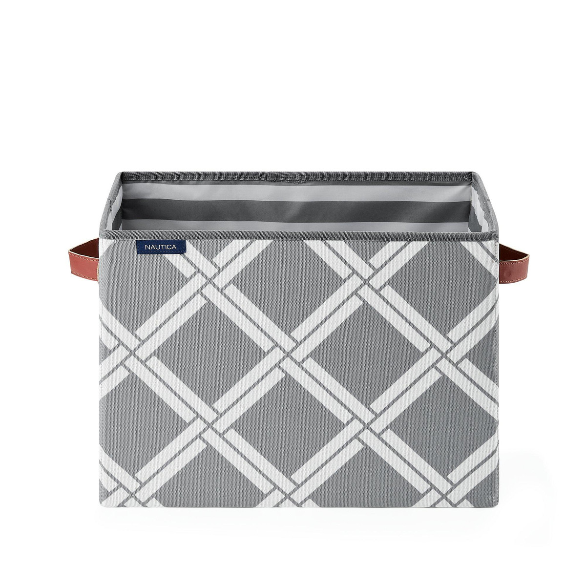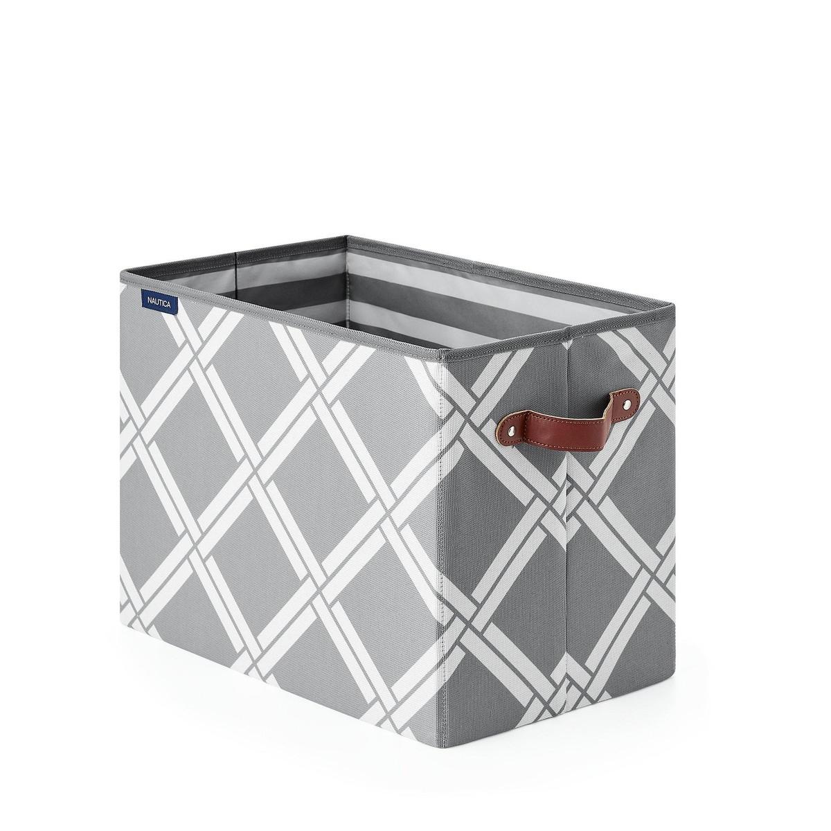 This Nautica Foldable Rectangle Storage Bin offers a stylish storage solution to effortlessly elevate any space in your home. The durable handles make it easy to transport while the convenient collapsible design makes this storage bin easy to store when not in use. This Nautica storage bin features a classic grey and white box weave design that will blend in beautifully to almost any décor. Easy to clean. Measures 16 in. x 10 in. x 12 in.