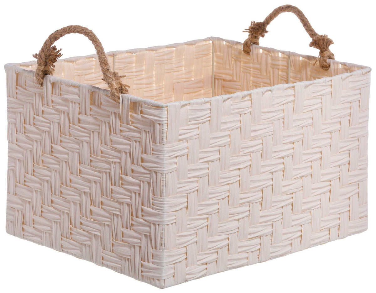 Timeless craftsmanship meets everyday functionality in the Rectangular Herringbone Weave Storage Basket, a perfect blend of structure and style. Designed with a classic herringbone weave, its textured pattern adds a refined touch, making storage feel like an intentional part of your décor rather than mere necessity. Measures 18 in x 10 in x 14 in.