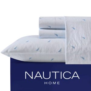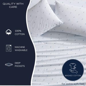 Experience ultimate comfort with the Nautica T200 Washed Percale Sheet Set. Crafted from 100% washed cotton percale, these lightweight, single-ply sheets offer a cool, crisp feel with a relaxed, casual finish. The fitted sheet features all-around elastic for a snug fit on mattresses up to 13 deep. Thoughtfully made with non-toxic dyes and Oeko-Tex certified, theyre machine washable and easy to care for. Explore more prints in our Washed Cotton Percale collection.