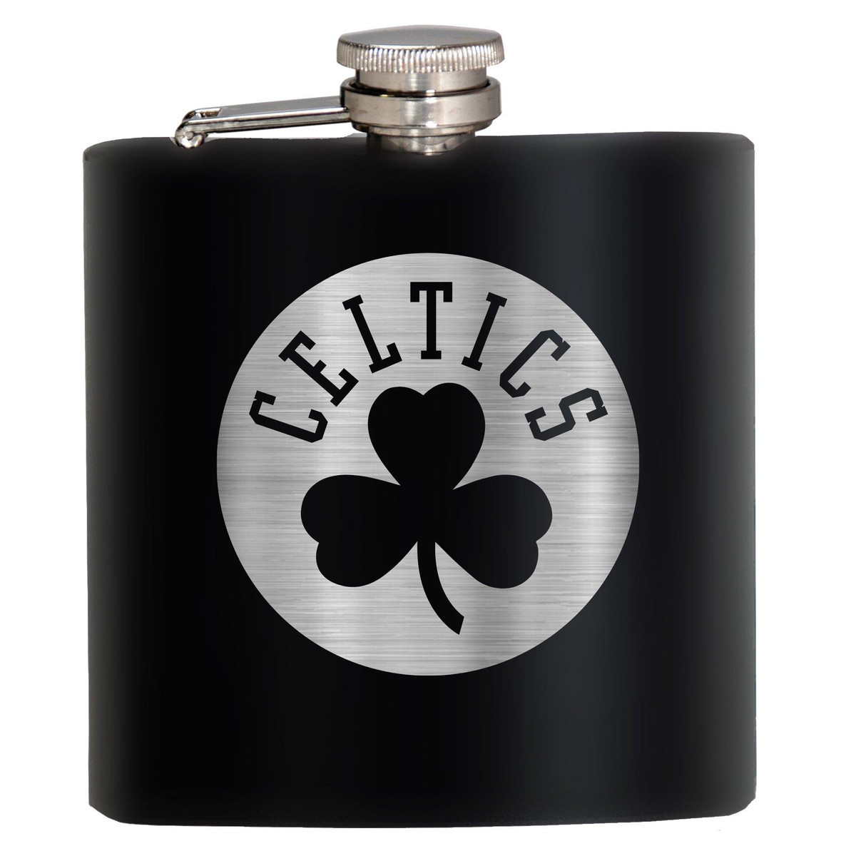 Show your team spirit! This Boston Celtics Stealth Hip Flask, made of kitchen-grade 18/8 stainless steel, holds 6 fluid ounces. It is powder-coated in a black matte finish and features laser-etched team graphics. Measures 3.75 in. x 1 in. x 4.25 in.