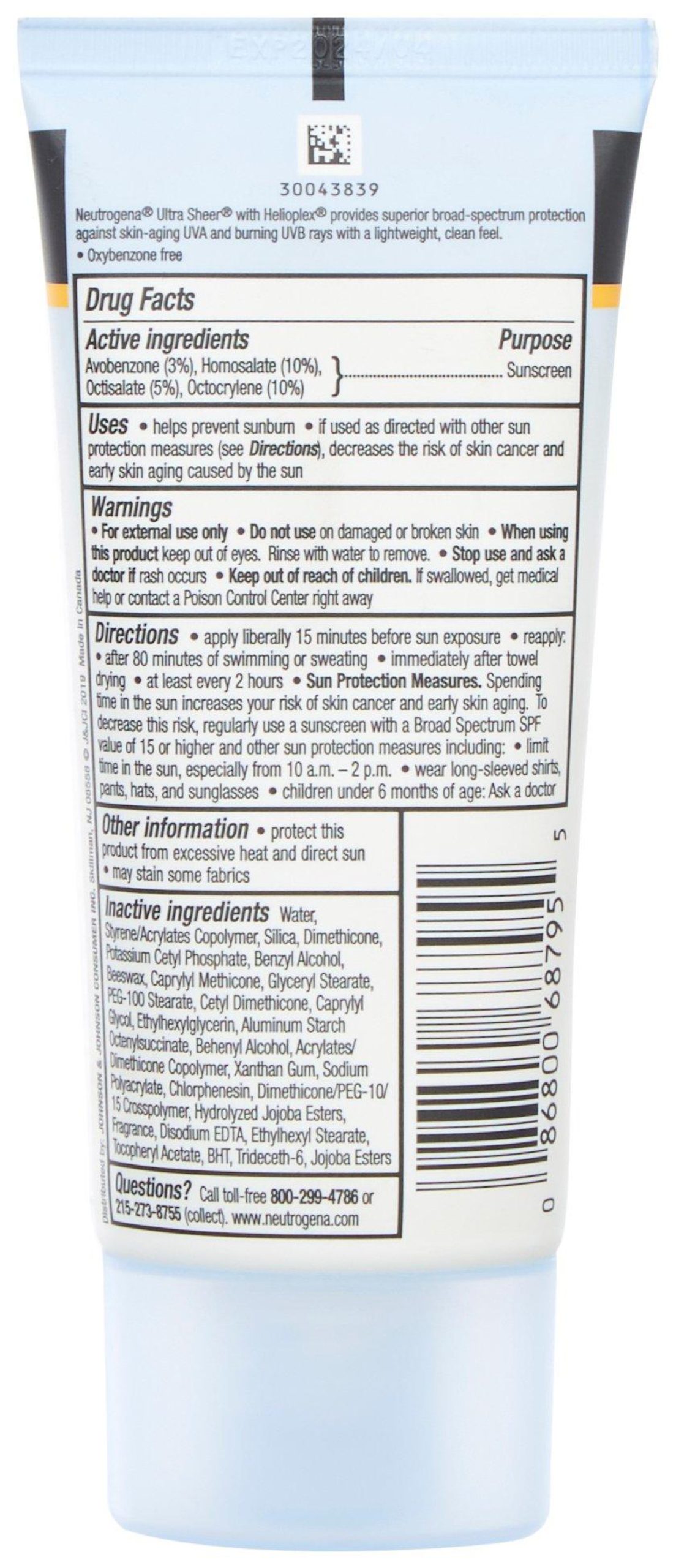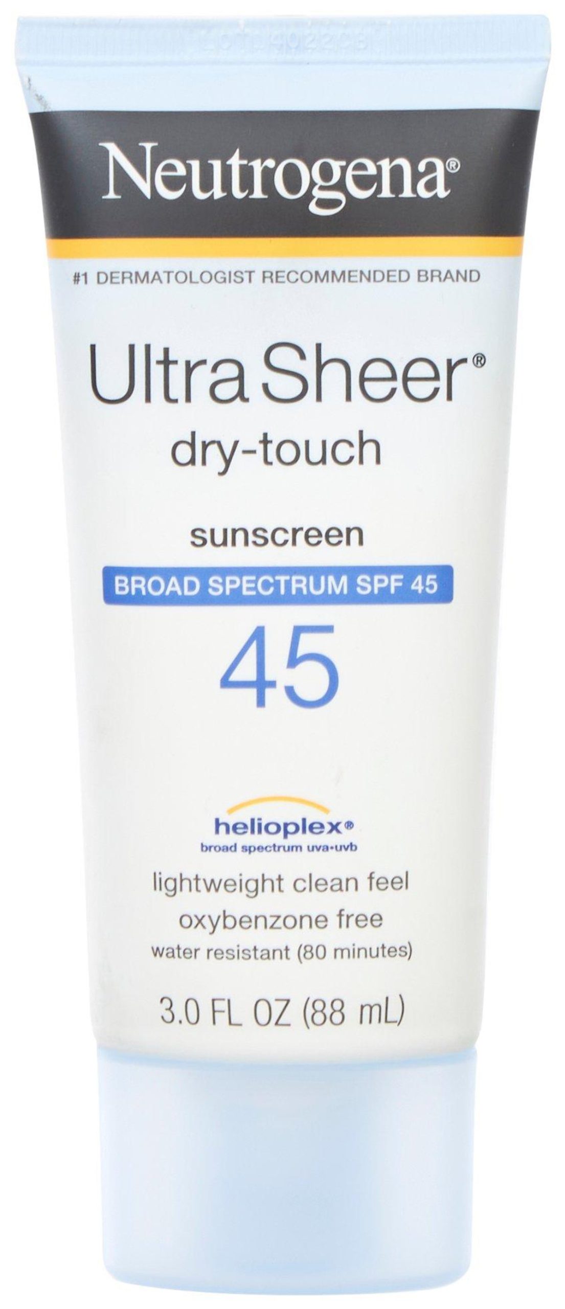 This Ultra Sheer Sunscreen from Neutrogena features a lightweight clean feel & oxybenzone-free formula. SPF 45 broad spectrum protection. Bottle contains 3 fl oz.