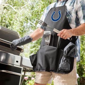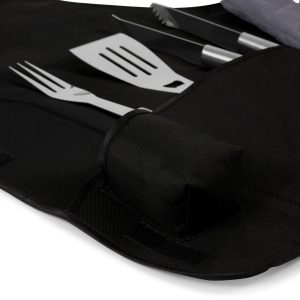 This Arizona Cardinals 6 pc.barbecue set and apron conveniently folds into an easy-to-carry tote complete with an adjustable shoulder strap. It includes a polyester canvas full-size apron with adjustable criss-cross back straps and pockets for grilling accessories, a dark grey chef’s hat, one stainless steel barbecue spatula with an integrated bottle opener, one stainless steel barbecue fork, and one stainless steel set of tongs.