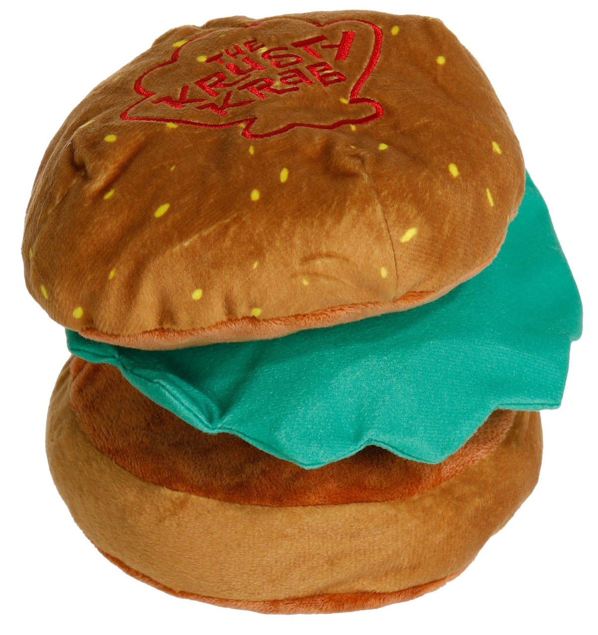 The SpongeBob Krabby Patty squeaky plush dog toy is a fun tribute to the iconic burger from Bikini Bottom. Shaped like a Krabby Patty and made from soft plush fabric, it features crinkle lettuce and a built-in squeaker to keep your pup entertained2. Designed for light to medium chewers, this officially licensed Nickelodeon toy is perfect for dogs who love playful textures and nostalgic flair.