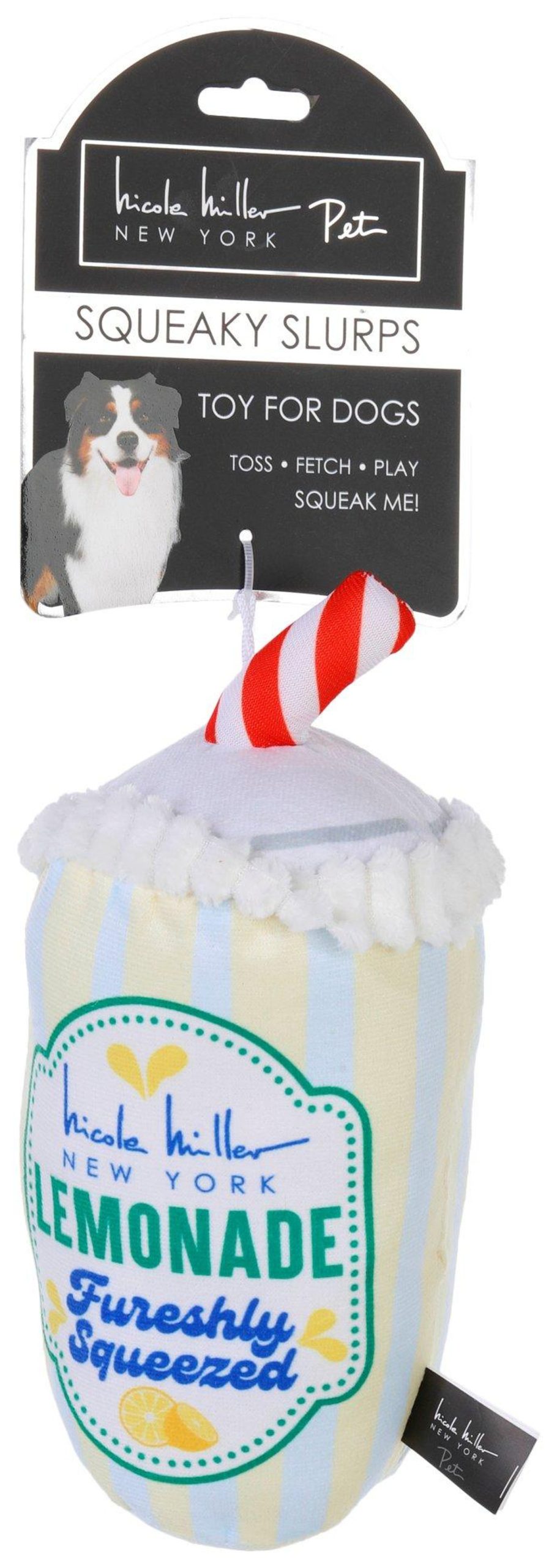 Add a splash of summer fun with this Lemonade plush dog toy, styled like a refreshing to-go cup with bright colors and soft fabric. Built-in squeaker keeps pups entertained while the plush texture makes it perfect for light chewing and cuddling. Great for indoor play or lounging with your furry friend. Measures approximately 9 in.