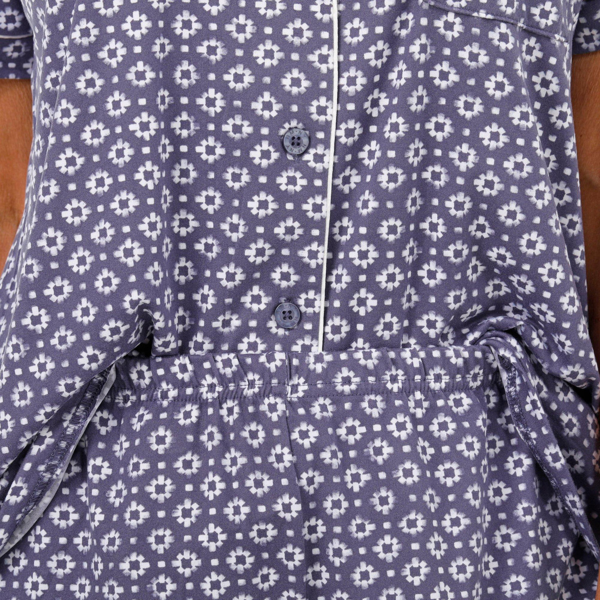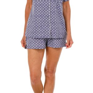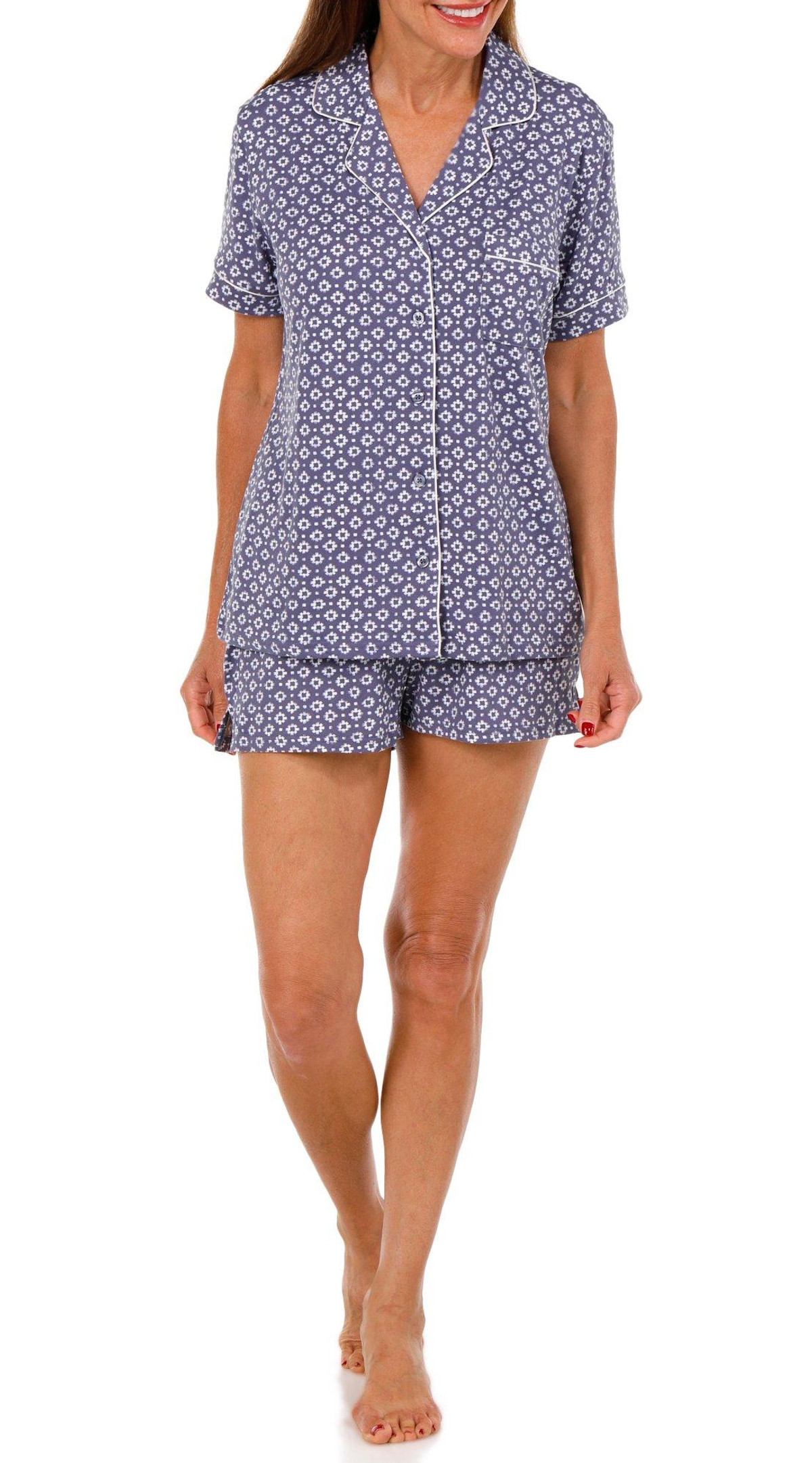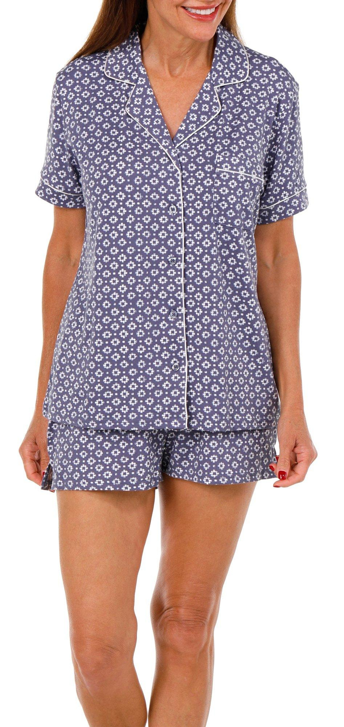 Sleep in style with our Women’s 2 Pc Floral Sleepwear Set. Featuring a short sleeve button-down top and matching shorts, this set is adorned with a charming floral print and crafted for soft, breathable comfort. Fabrication 90% polyester, 10% spandex