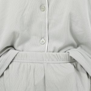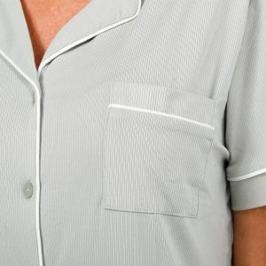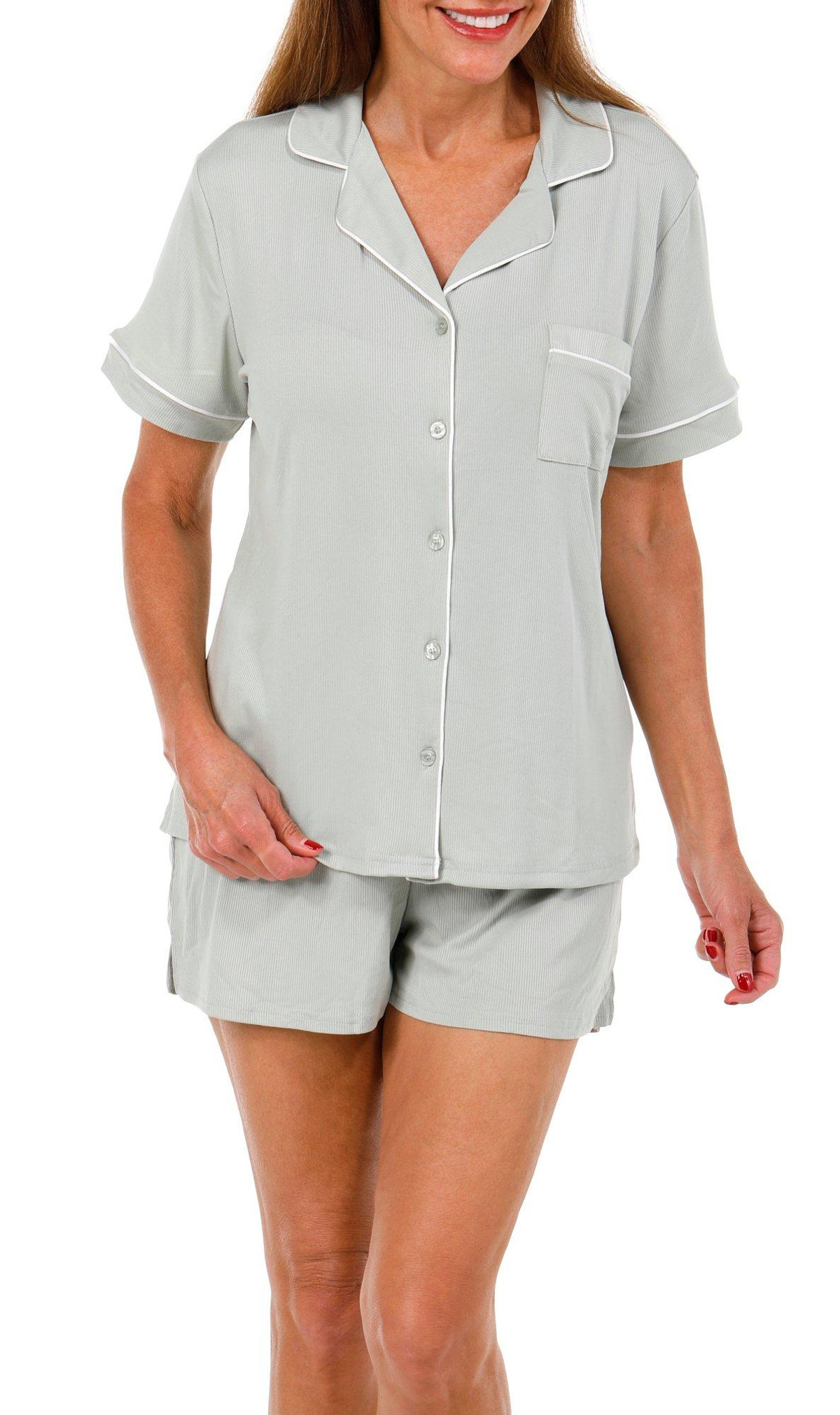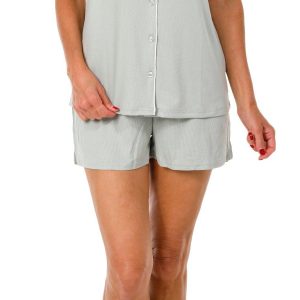 Lounge in effortless comfort with our Women’s 2 Pc Ribbed Sleepwear Set. Featuring a solid color design, this set includes a short sleeve button-down top and matching shorts with a soft ribbed exterior. Fabrication 95% polyester, 5% spandex