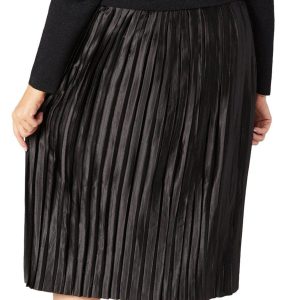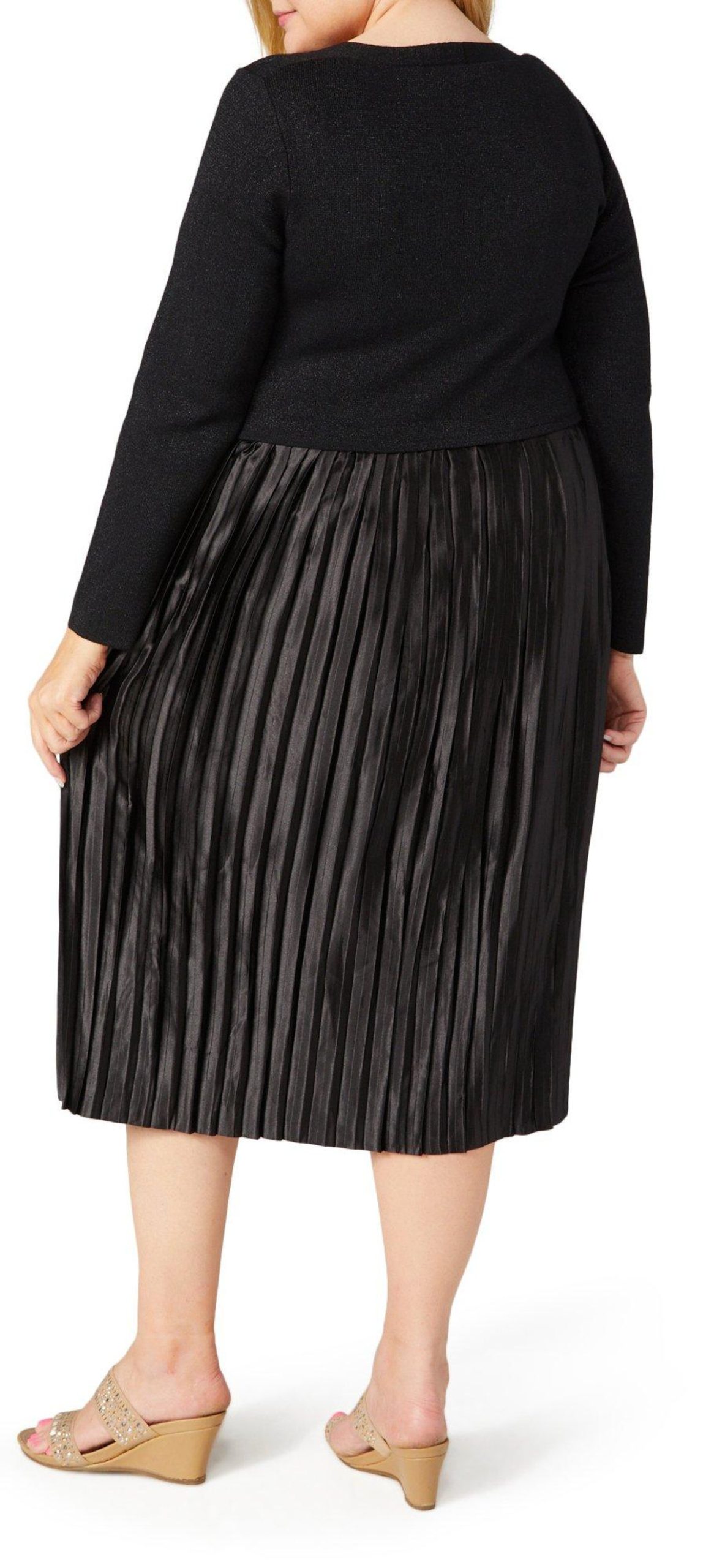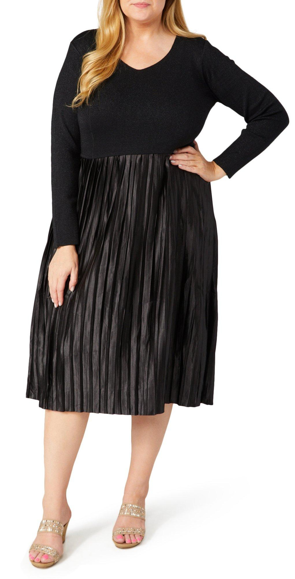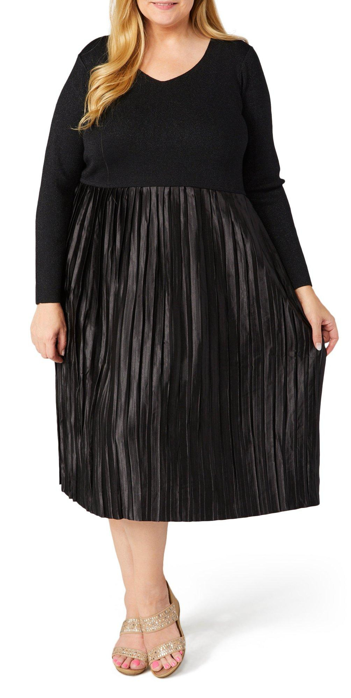Nina Leonard Plus Long Sleeve Mixed Media Midi Dress