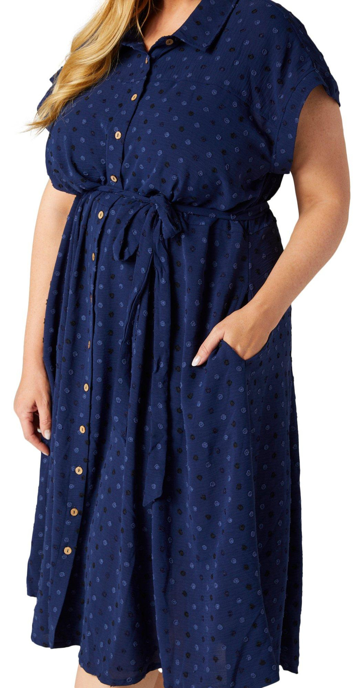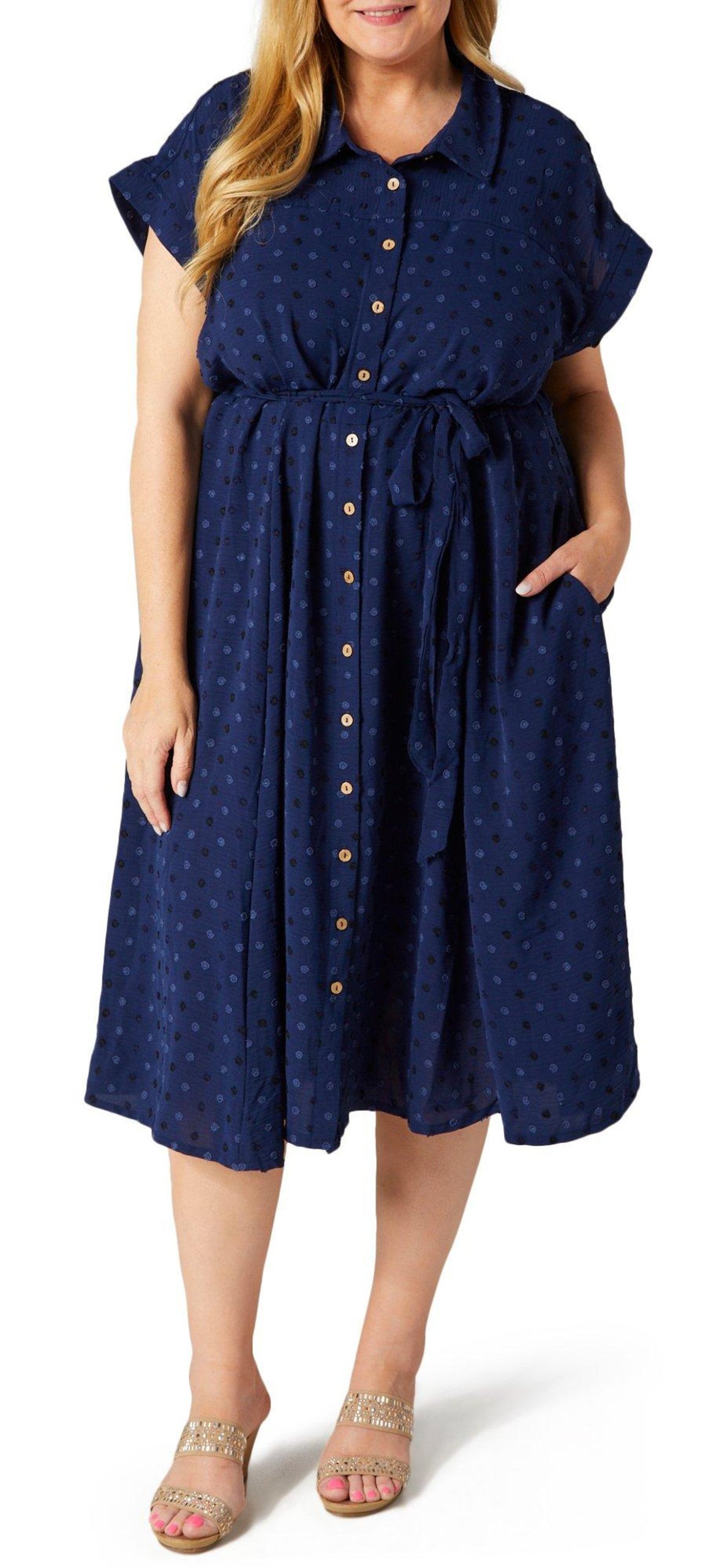 Nina Leonard Plus Short Sleeve Midi Shirt Dress