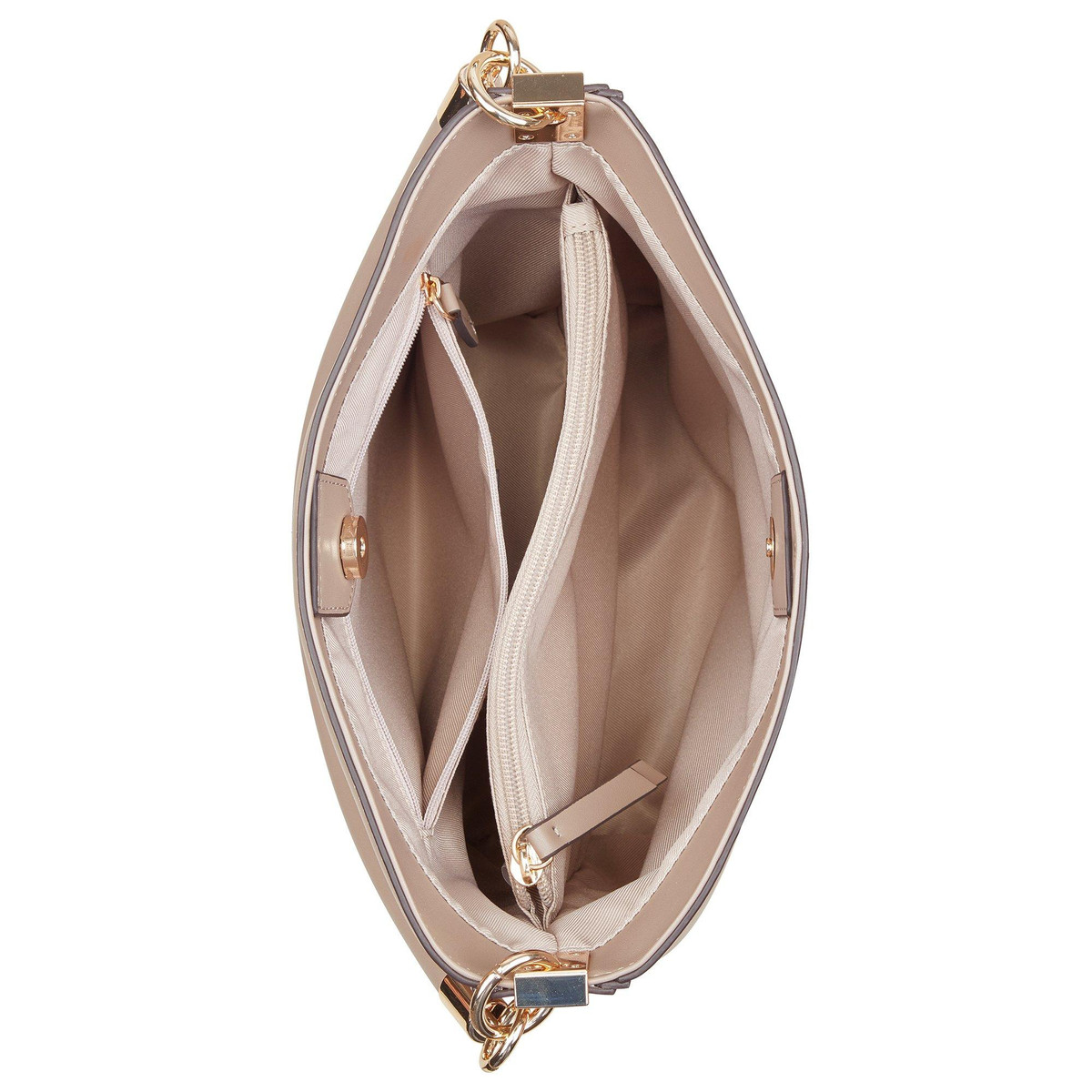 The designer Donella bucket crossbody bag is great silhouette to dress up or down. It converts from bucket to crossbody and is made from beautiful, soft lamb-like material with gold-tone metal hardware. Measures 11 in x 4 in x 10 in.