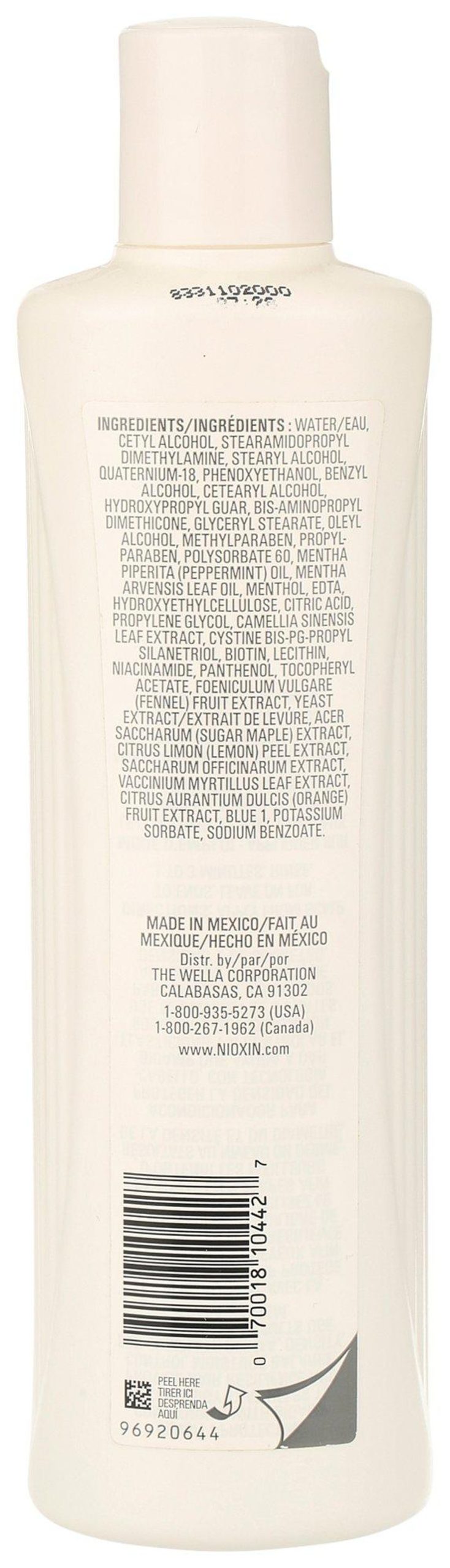Nioxin scalp therapy conditioner for progressed thinning hair. Color safe. Apply from scalp to ends. Leave on for 1-3 minutes. Contains 10.1 fl. oz.