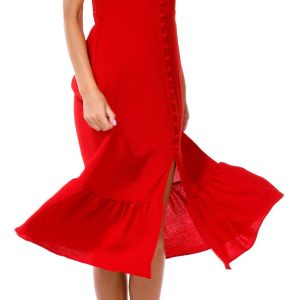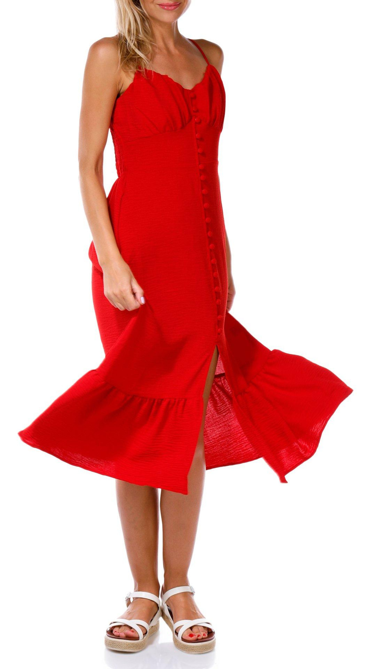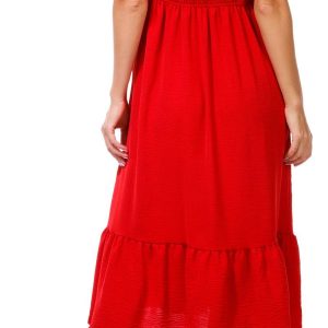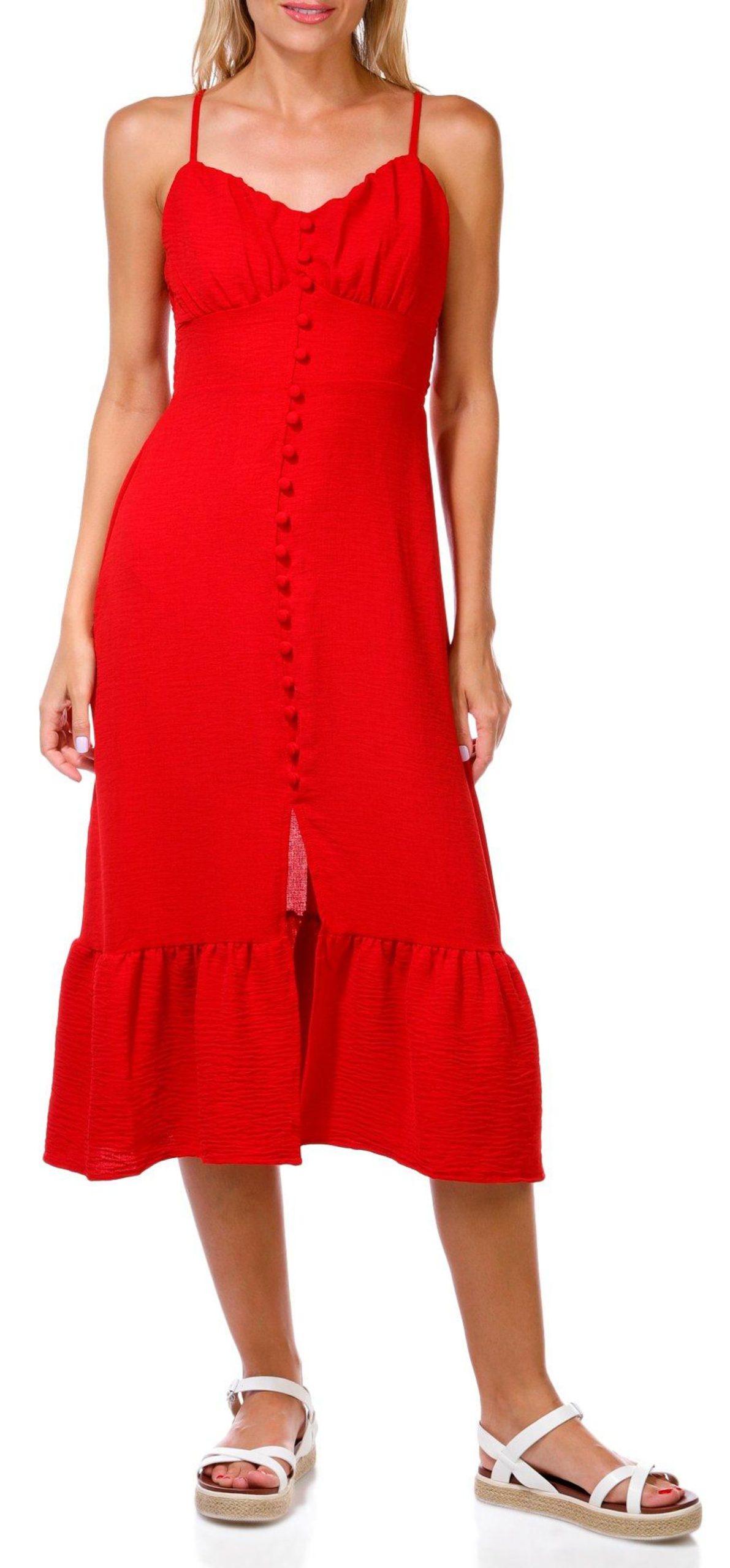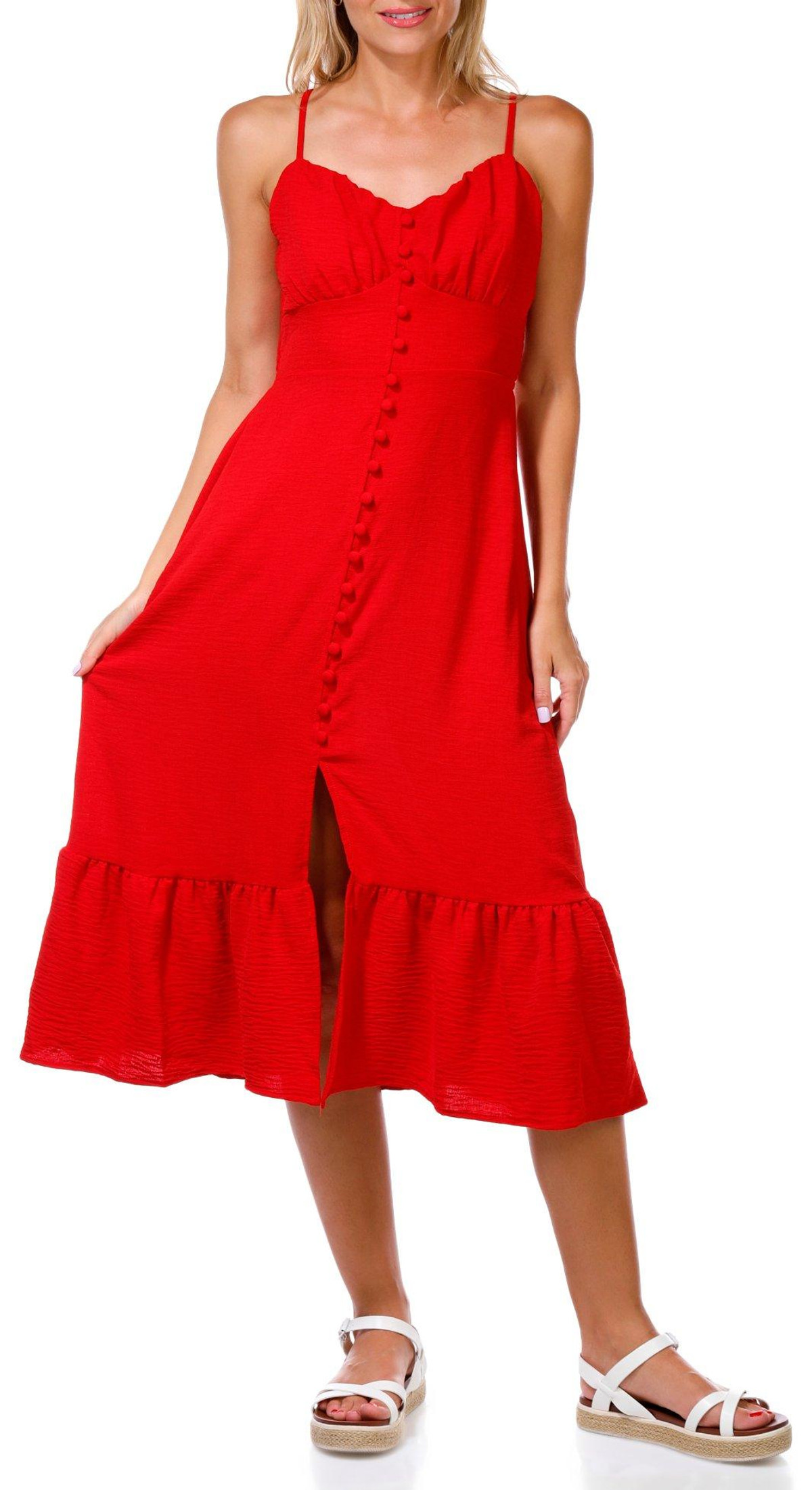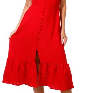 Playful and chic, this Sleeveless Flounce Dress features a sleek solid color design and a charming buttoned front. The flounce detail adds a touch of movement, making it perfect for sunny days, brunch dates, or weekend adventures.