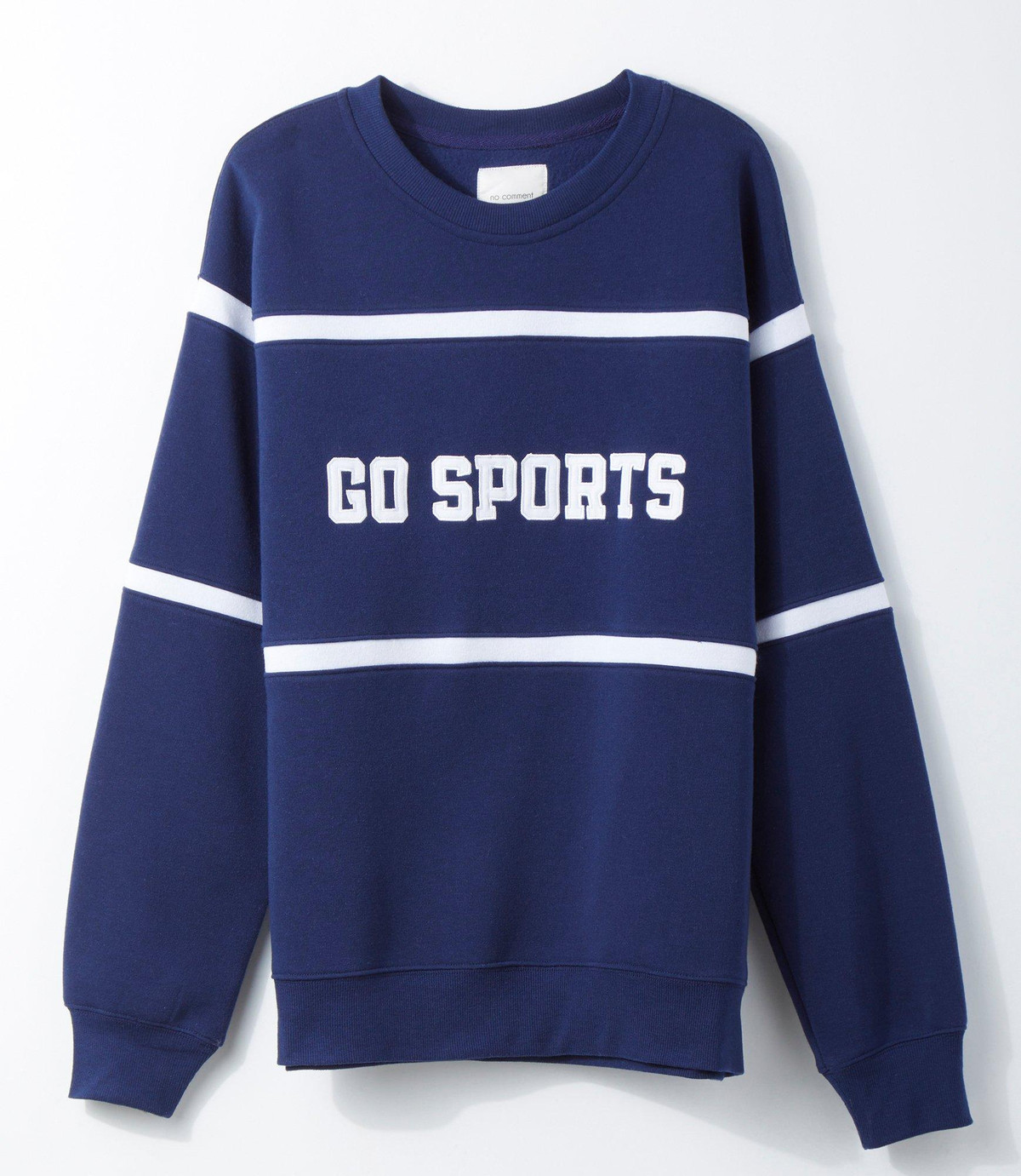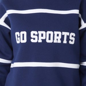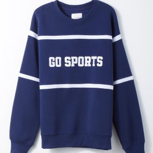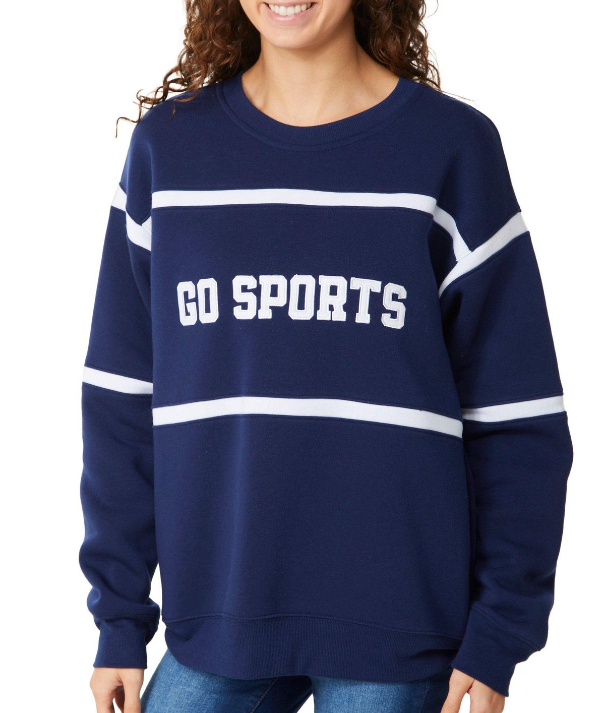 Stay cozy and trendy with our long sleeve Go Sports Pullover. Designed with a crew neckline and soft inner fleece, it keeps you warm during chilly fall days. The embroidered Go Sports script adds playful charm while striped sleeve details bring a sporty touch to this game day essential. Fabrication 100% polyester