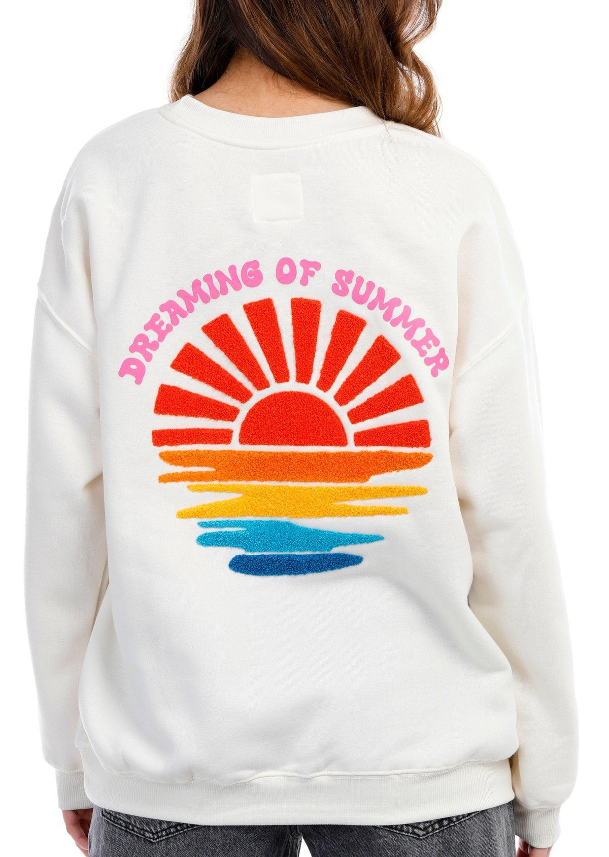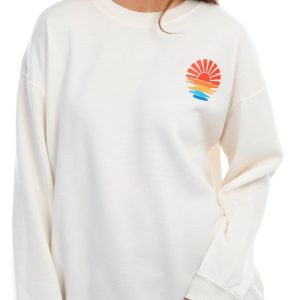 This Juniors Printed Long Sleeve Sweatshirt features a Dreaming of Summer embroidered print, adding a relaxed, seasonal vibe to your wardrobe. Made from polyester, it offers a soft and comfortable feel, perfect for layering or wearing solo. Ideal for casual days, this sweatshirt brings warmth and style to your laid-back look.