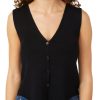 This sleeveless top features a solid color design on soft and smooth ribbed stretch fabric, a V-neckline, seamless styling design, and sewn in bra pads. The top length measures approximately 19 in. Fabrication 92% nylon, 8% spandex.