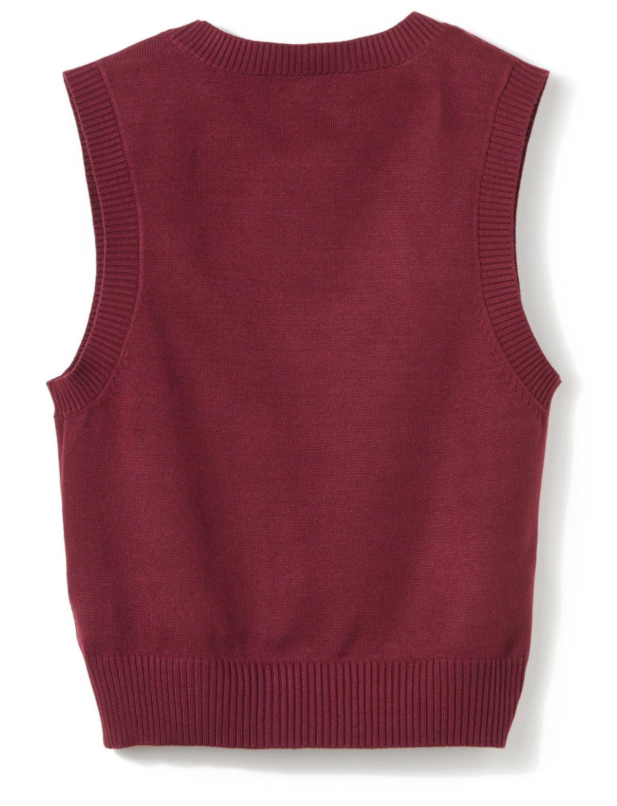 This junior’s sleeveless sweater vest features a soft feel and a front motif for standout style. Perfect for layering or wearing solo with casual or dressed up looks. Fabrication is 50% rayon, 28% polyester, and 22% nylon.