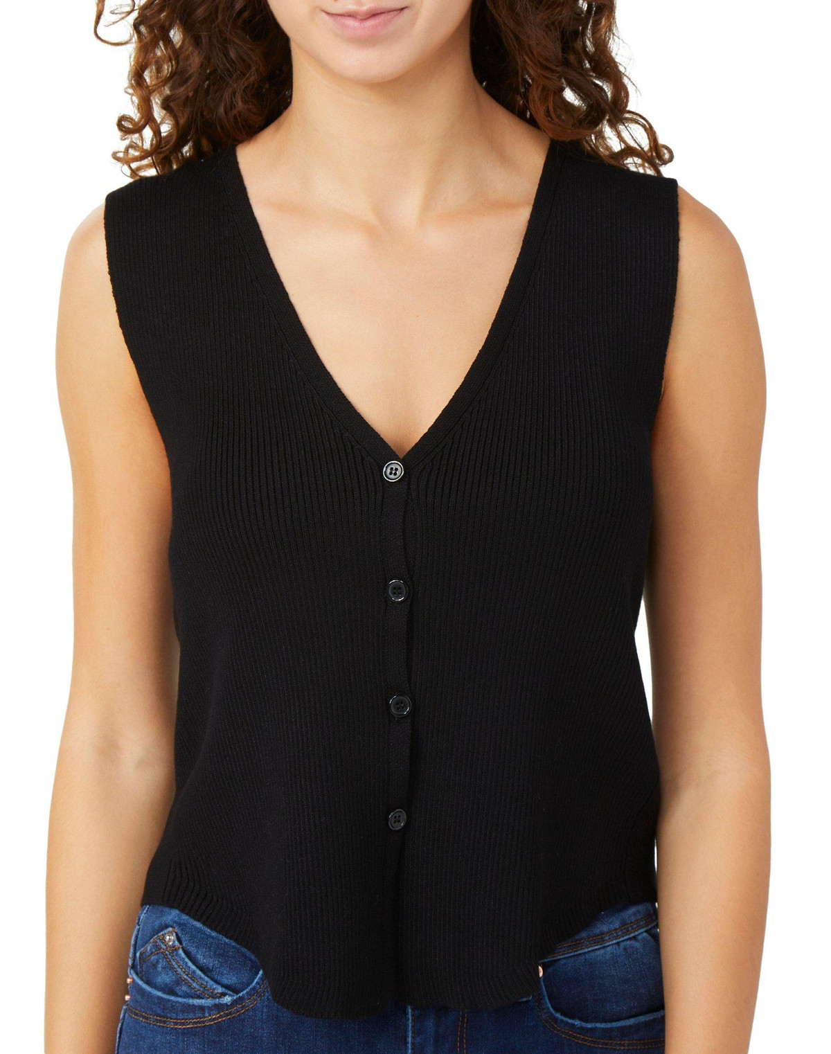 Elevate your layering game with the Juniors Solid Button Down Vest. Featuring a solid color, v-neckline, and button-down front, this versatile piece adds a tailored touch to any outfit. Fabrication 72% rayon, 28% polyester