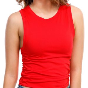 Introducing this Seamless and Sleeveless Top, a stylish and comfortable addition to your wardrobe. This top features ruched sides, adding a touch of elegance and a flattering fit. The seamless design ensures a smooth silhouette, while the sleeveless cut makes it perfect for layering or wearing on its own. The fabrication is 92% nylon and 8% spandex.
