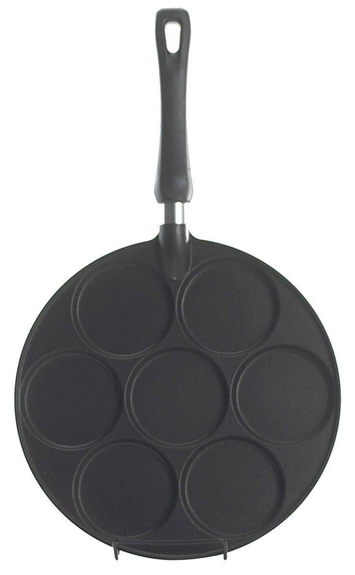 Nordic Ware Silver Dollar Pancake Pan with PFOA-free nonstick interior makes silver dollar-sized pancakes. Griddle has seven 3” cavities. For use on gas, ceramic & electric stovetops. 17.5”L x 10.5”W x 2.25”H
