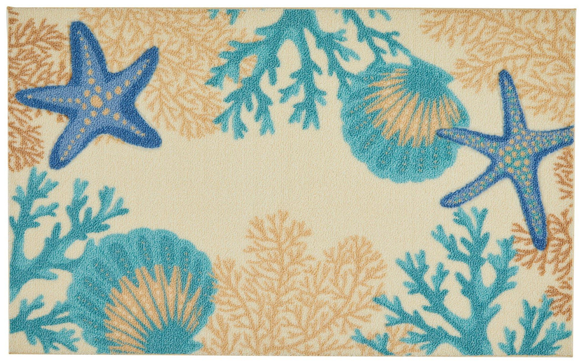 Transform your space with the 20×32 Shell Border Accent Rug. Crafted from 100% polyester, this rug boasts a stylish sea shell design that adds a touch of coastal charm to any room. Its durable construction ensures long-lasting beauty, while the soft texture provides comfort underfoot. Perfect for beach-themed decor, this accent rug is both functional and fashionable, making it a must-have addition to your home.