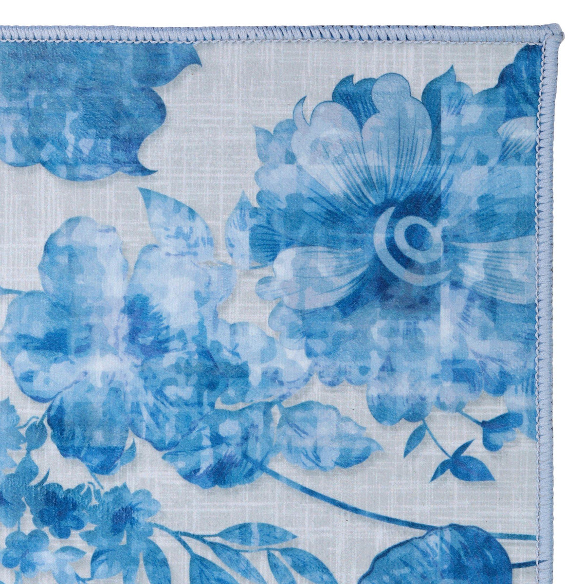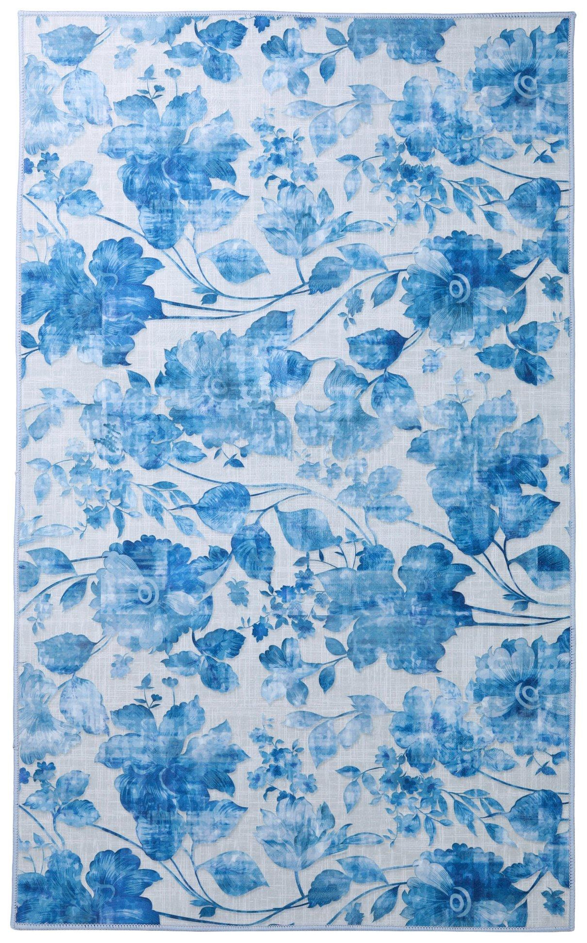 Blue florals on soft grey? Yes, its as pretty as it sounds. This 27×45 accent rug brings a gentle pop of pattern without overwhelming your space. Made from a cozy polyester-spandex blend, its machine washable and drip dry, so its as easy to care for as it is to love. The skid-free backing keeps it right where you want itperfect for bathrooms, kitchens, entryways, or layered under a doormat. Pair it with soft neutrals, navy, or brushed silver for a relaxed, polished look.