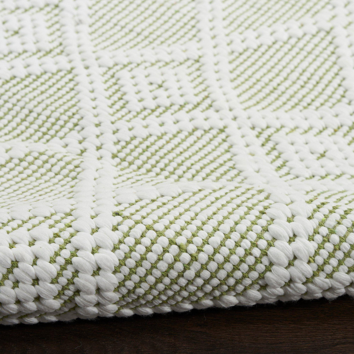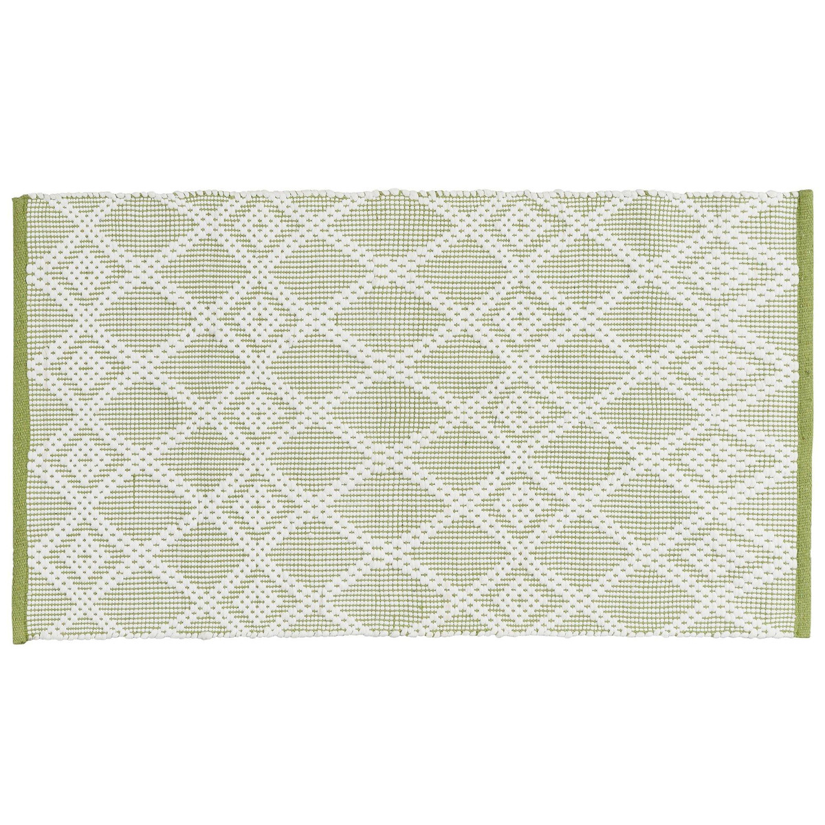Nourison offers the world’s best carpets, rugs, and floor coverings! This rug will add a chic accent to any space in your home. It features a woven diamond pattern. Fabrication is 71% Polyester, 23% Cotton, and 6% other fabric. Measures 27 in x 45 in.