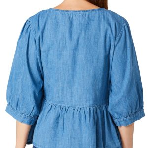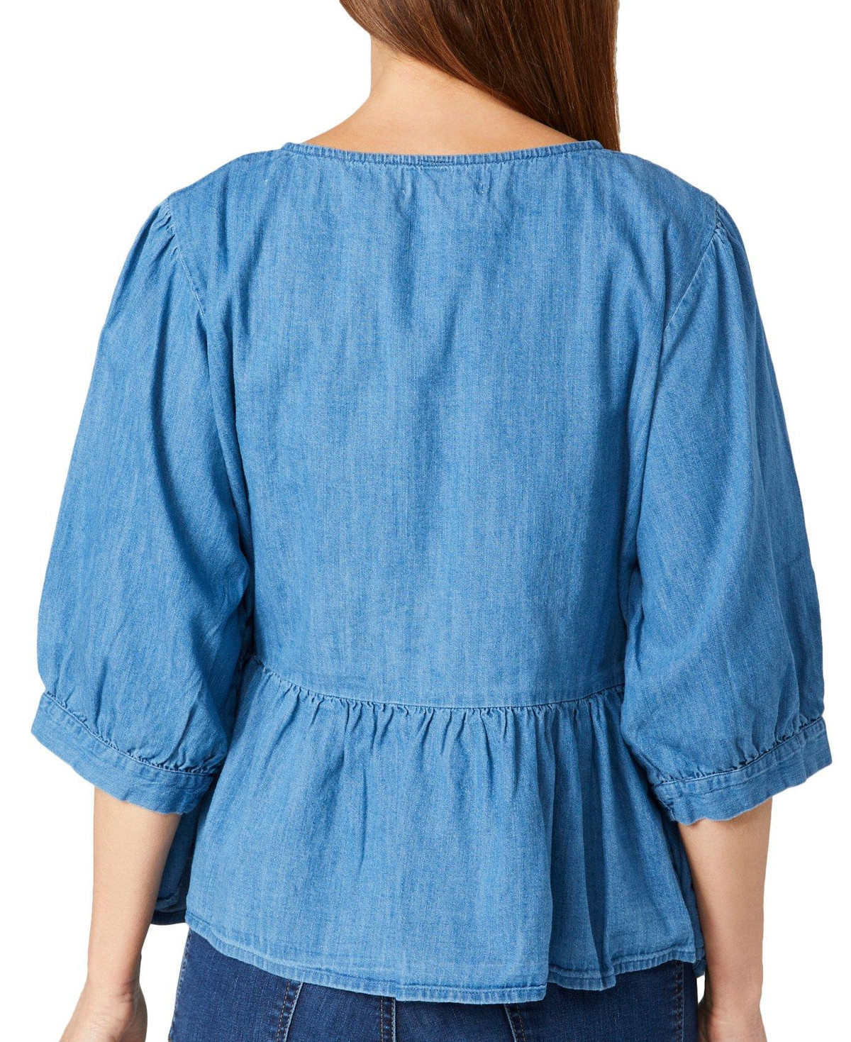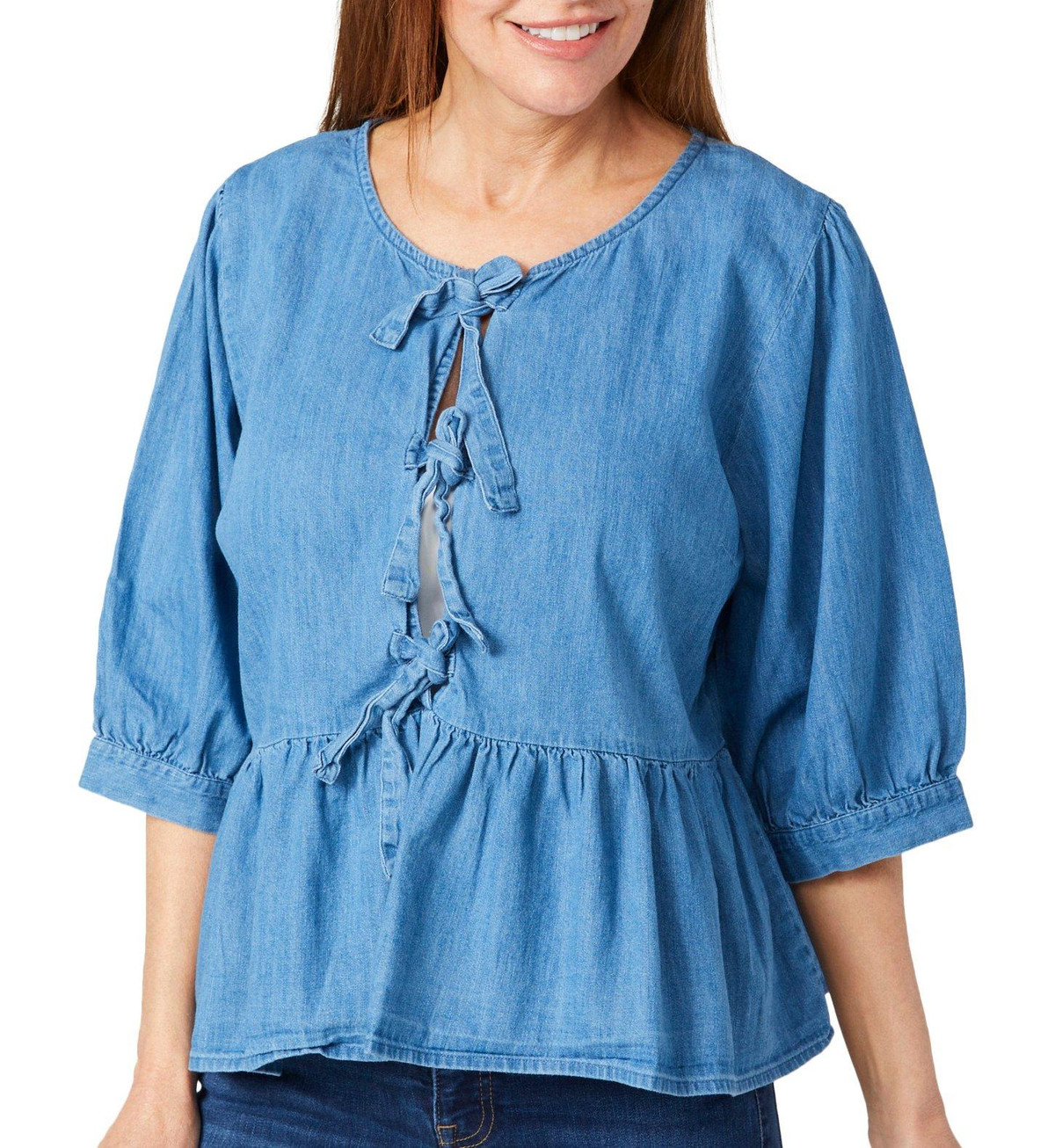 Nouveaux Womens 3/4 Sleeve Tie Front Denim Jacket