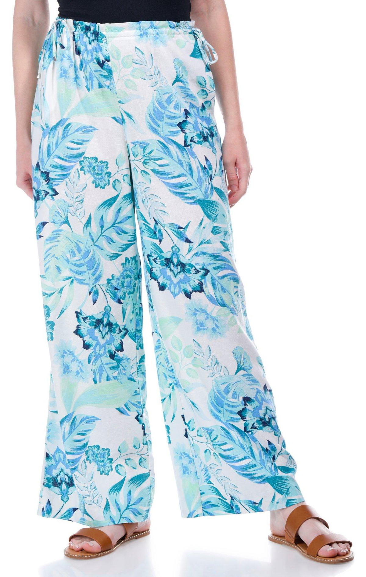 Flow into comfort with the Womens Side Tie Botanical Wide Leg Pants. Featuring a relaxed wide leg fit, elastic waistband with side tie detail, side seam pockets, and a 29-inch inseam, they blend effortless style with everyday ease. Fabrication is 75% viscose and 25% linen.