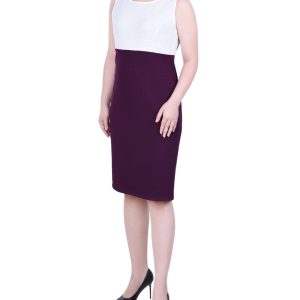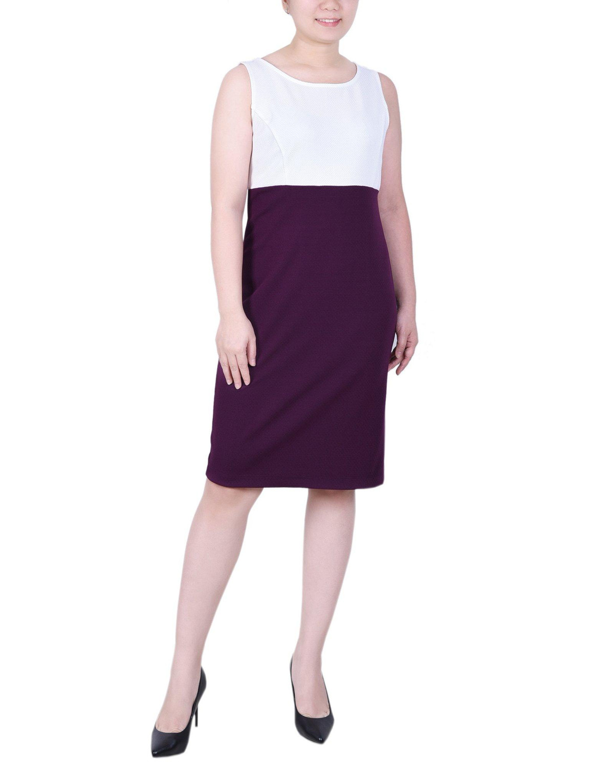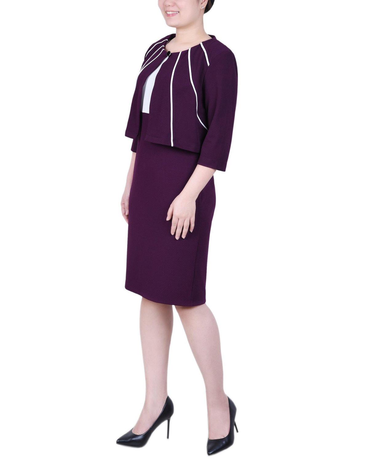 With bold contrast piping details, this NY Collection Petite color-blocked dress is layered under a 3/4 sleeve jacket, perfect for any work day.
