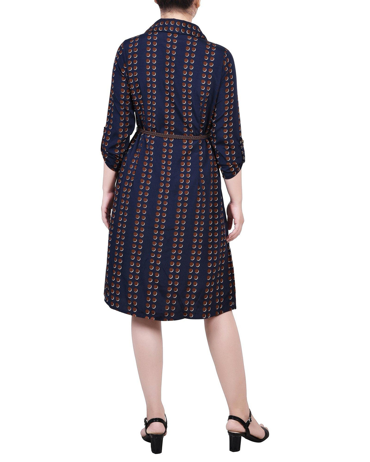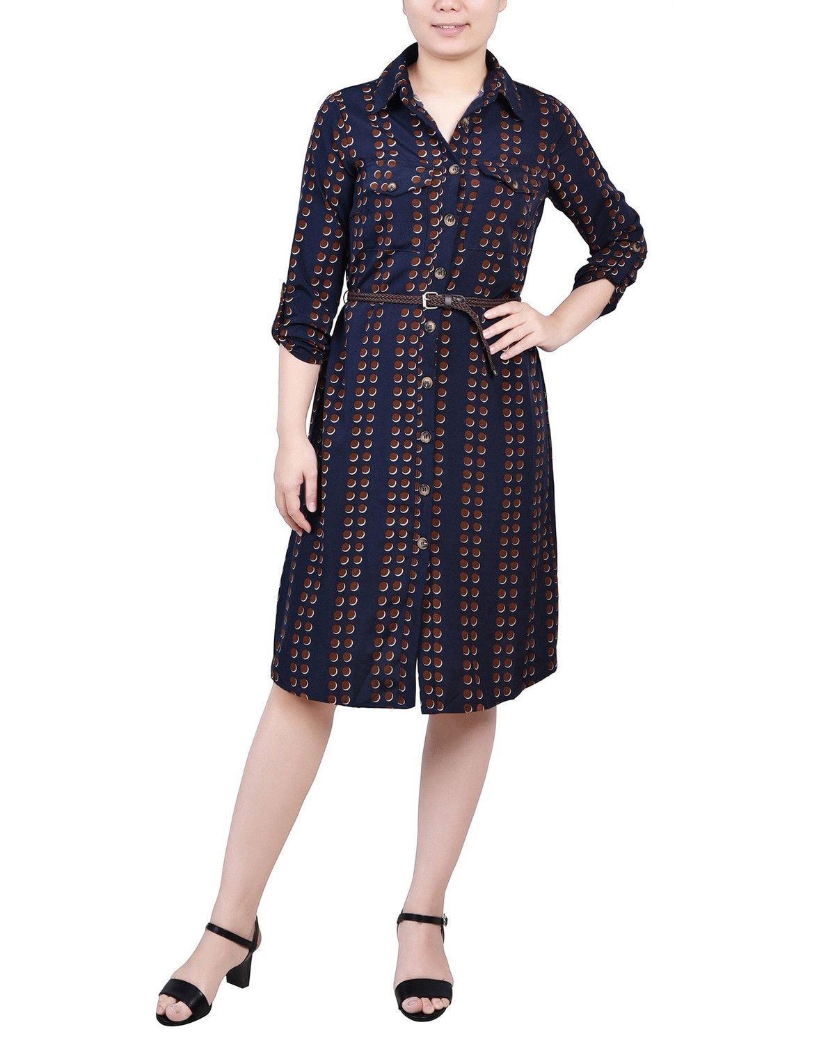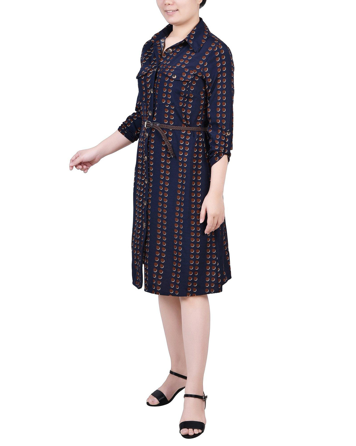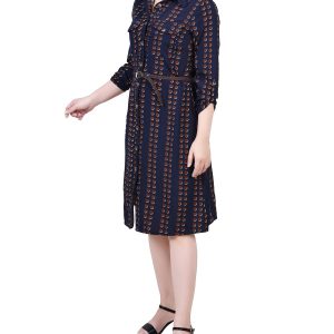 You’ll always be in style with this classic Petite shirt-dress from NY Collection with its full button front and belt.