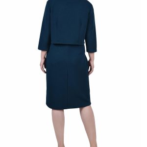 This Roll Tab Sleeve Denim Dress with full button front with a self belt and below the knee length.