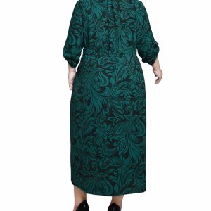 Elevate your work wardrobe with this classic and sophisticated midi dress, perfect for transitioning seamlessly from the office to lunch meetings. Featuring a belted waist for a flattering silhouette, this dress boasts 3/4-length roll tab sleeves that add a touch of versatility and style. Its professional design ensures you look polished and confident, making it an essential piece for any career-driven individual. Dress length approximatley 48 in. Fabrication 100% polyester.