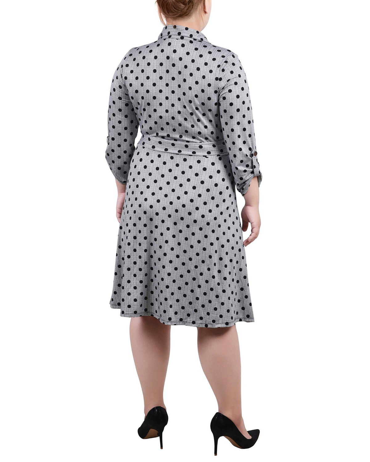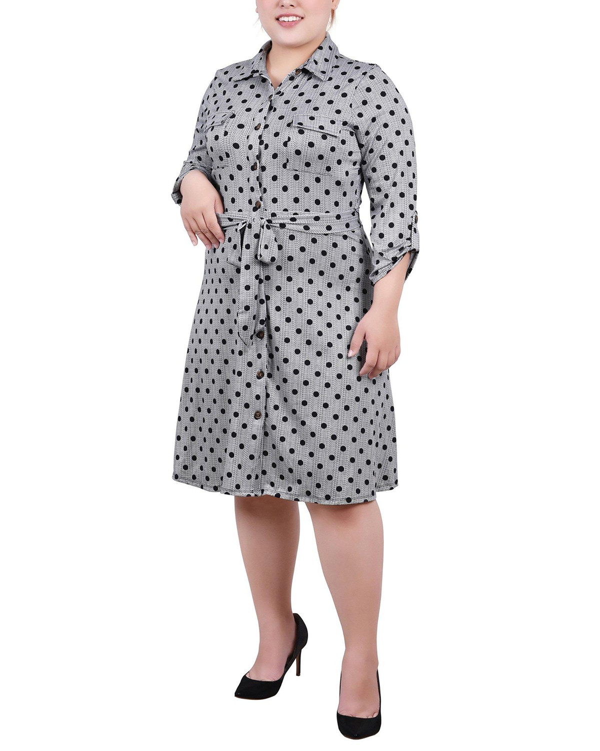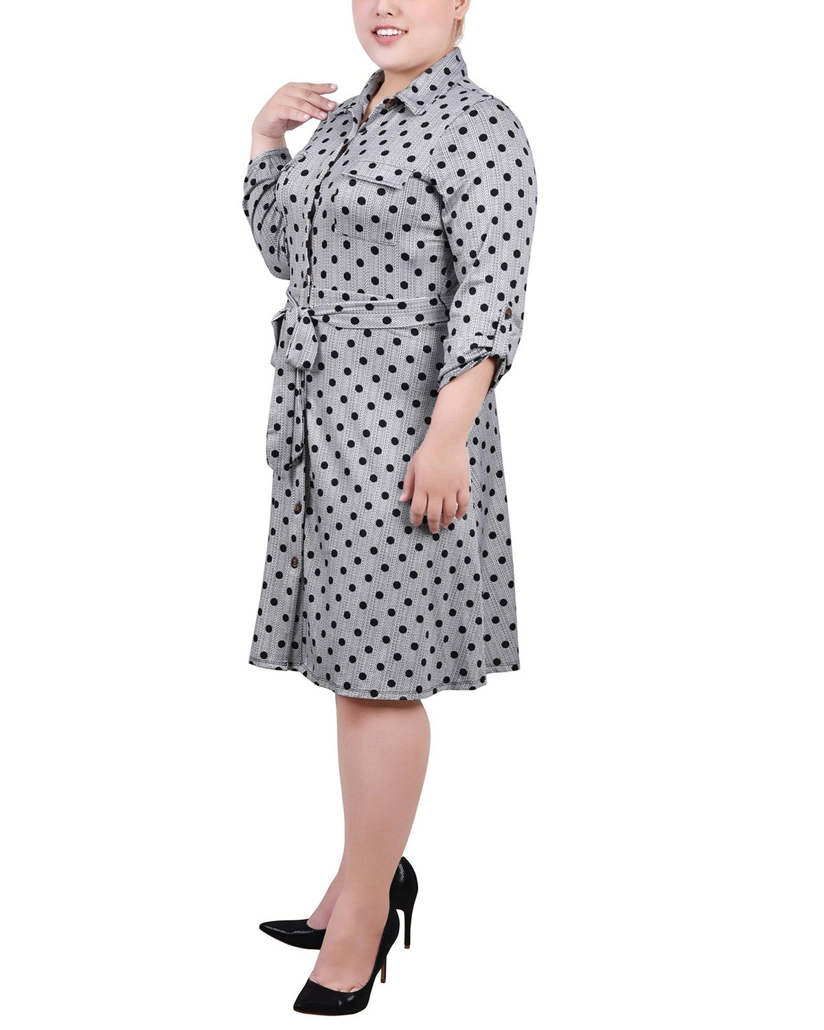 NY Collection Plus 3/4 Sleeve Roll Tab Shirtdress