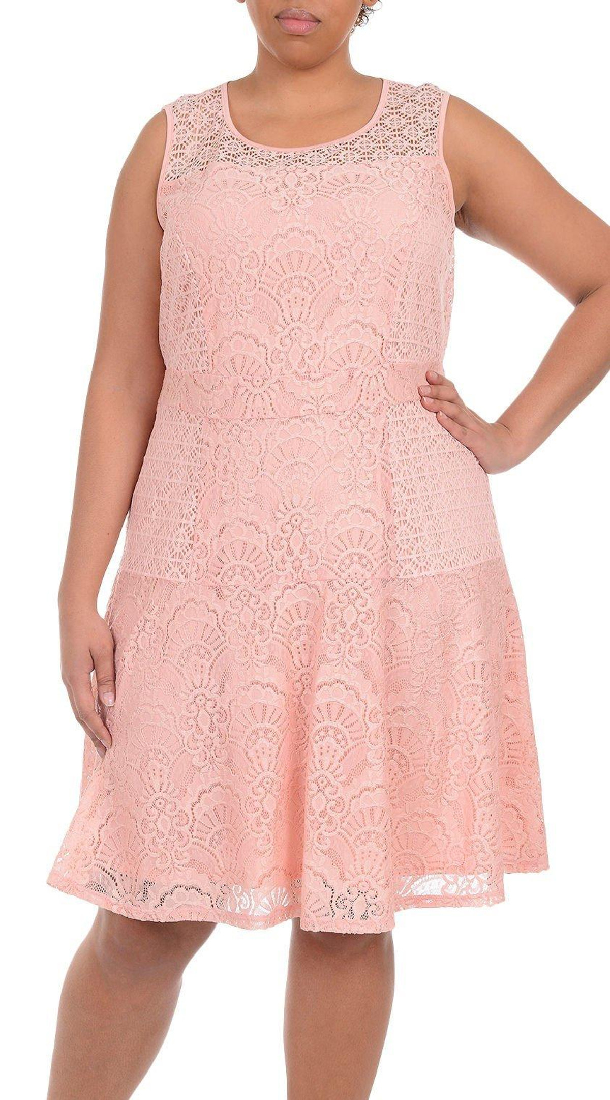 NY Collection brings a comfortable and stylish look to your wardrobe. A gorgeous choice for cocktail parties and summer weddings, this lace dress has princess lines and panels to play up your curves with a flared hem for a flirty finish. Length is approximately 40 inches from size medium.