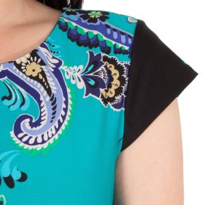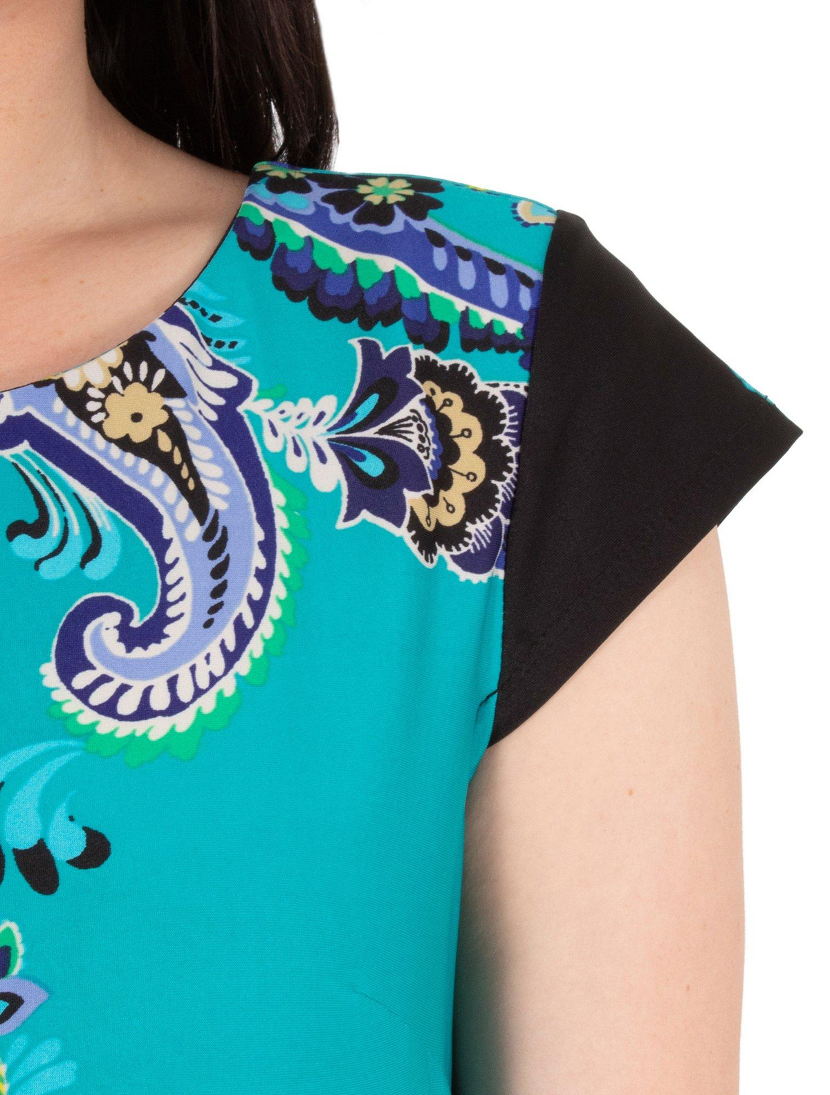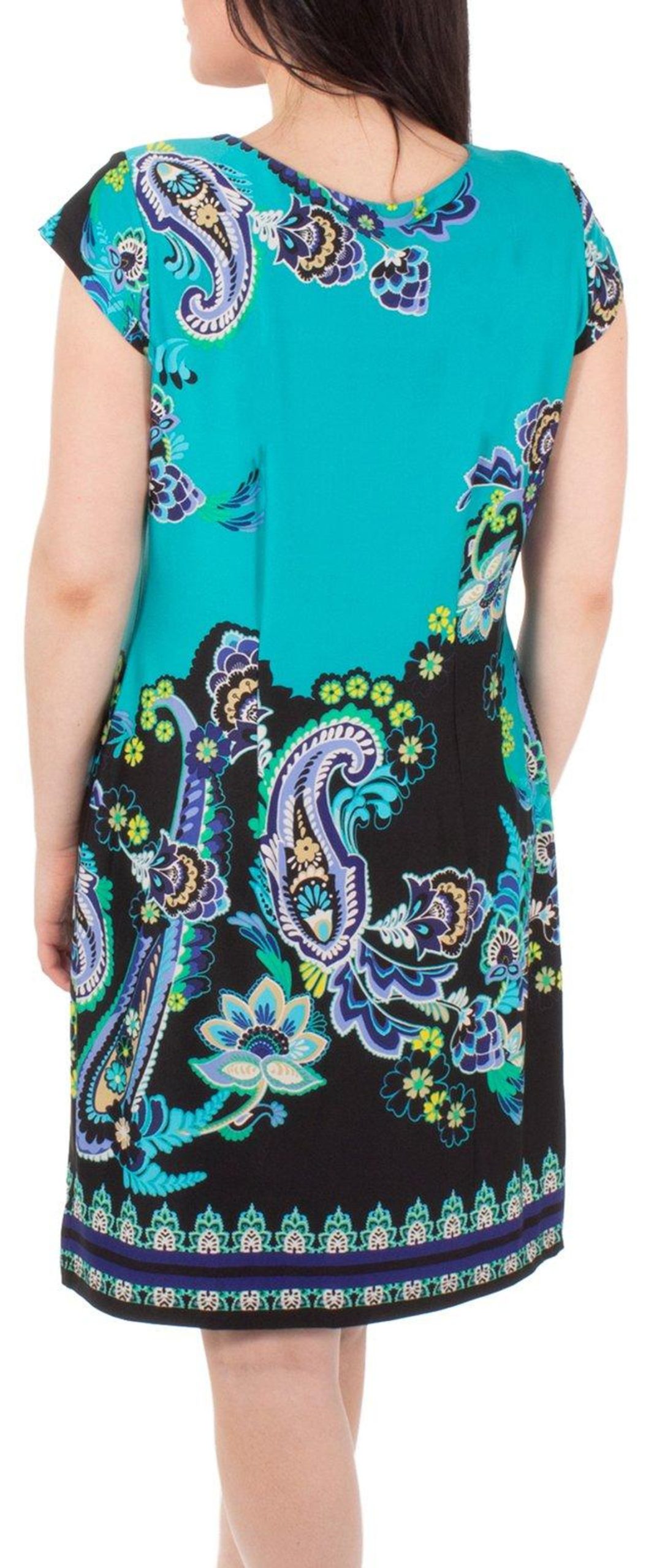 NY Collection present this printed shift dress, complete a round neckline and cap sleeves.