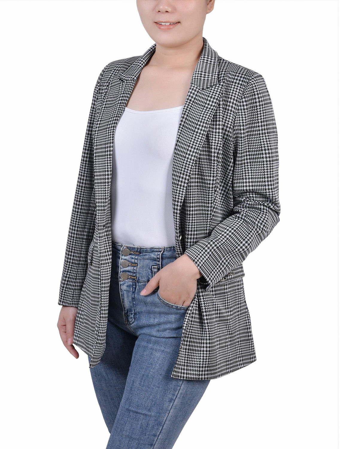 This ponte jacket from NY Collection was made for those cool days. Pair with jeans or your favorite skirt.