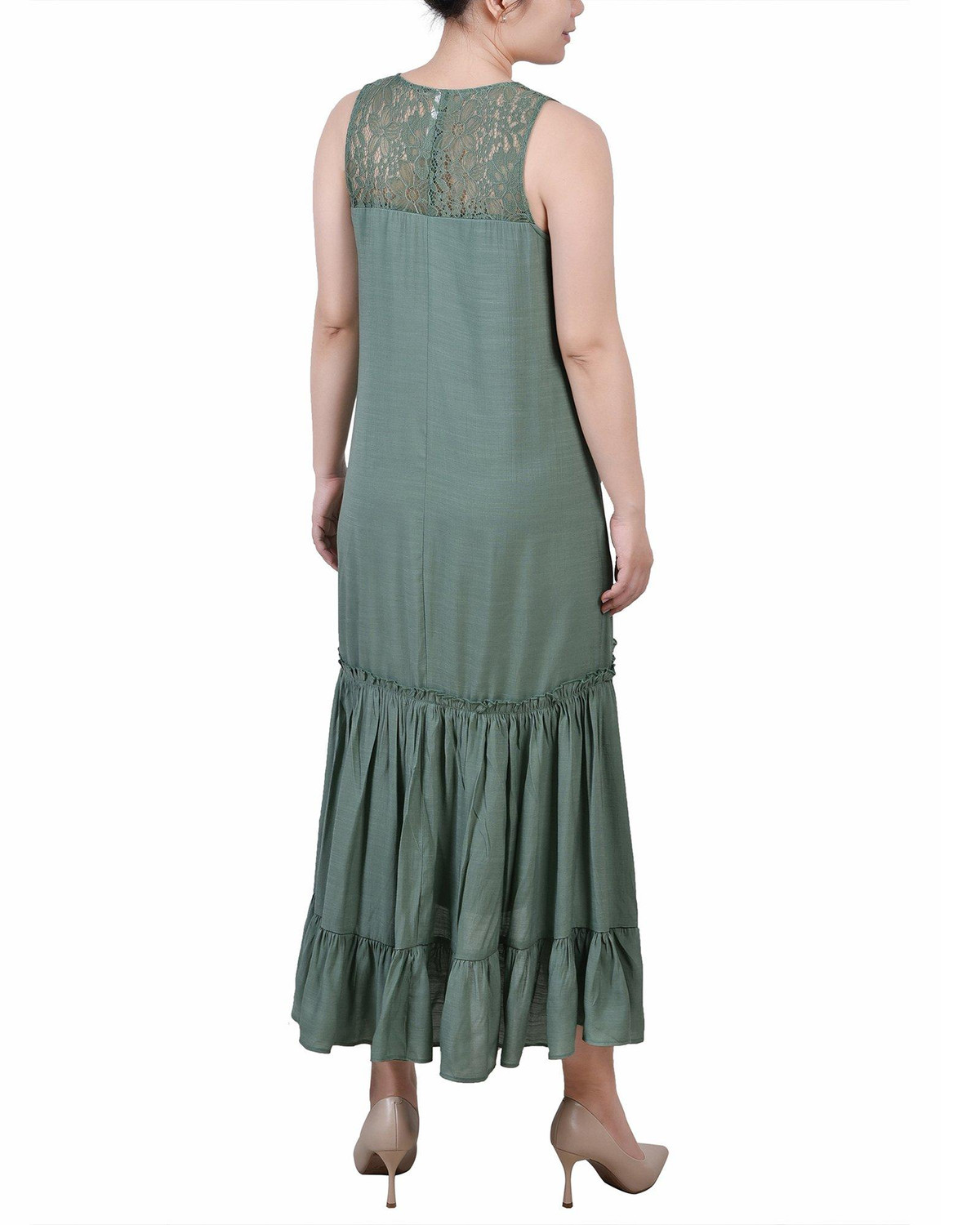Enjoy the summer warmth in this lace-yoked maxi dress from NY Collection.