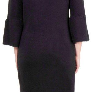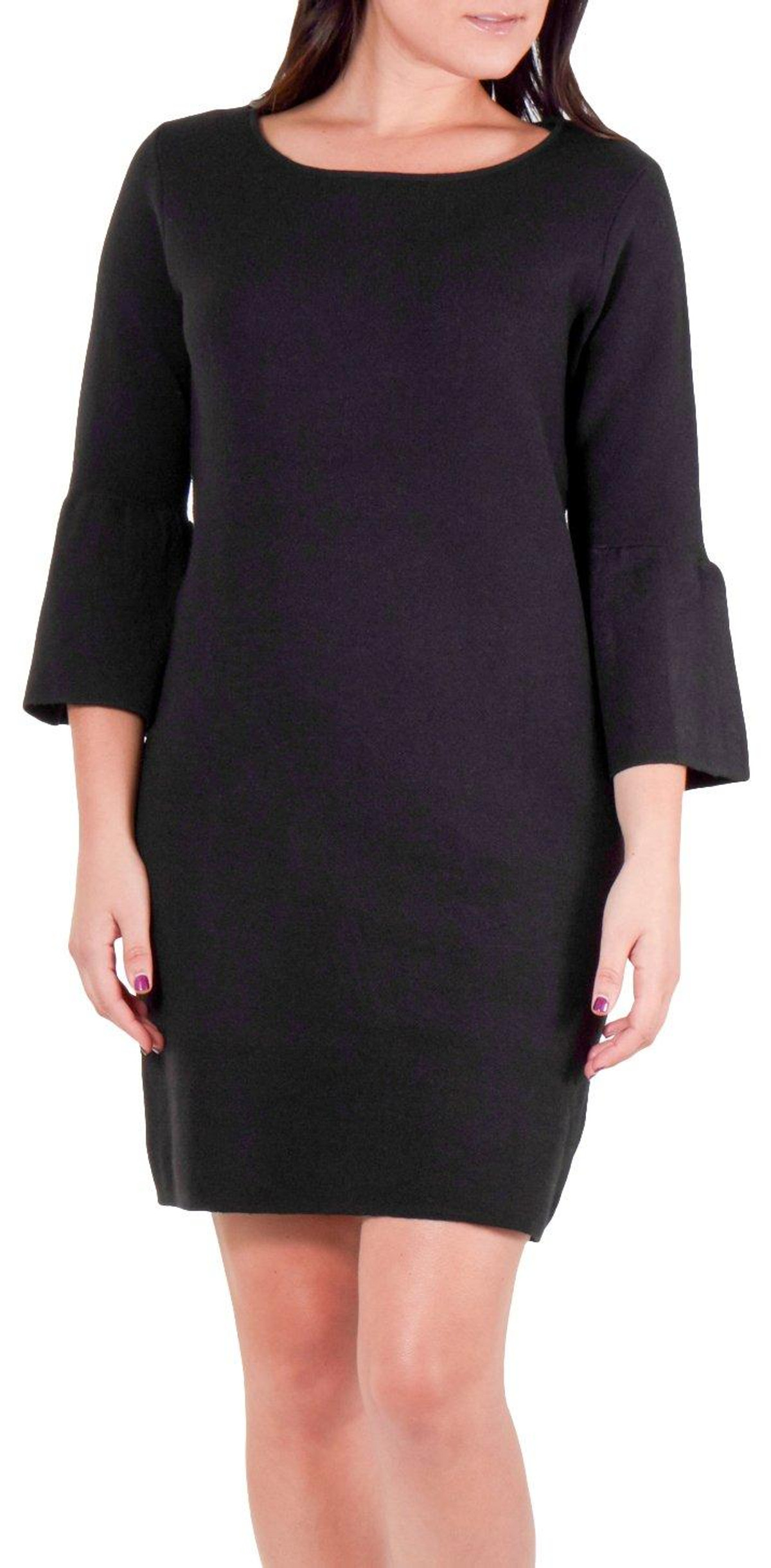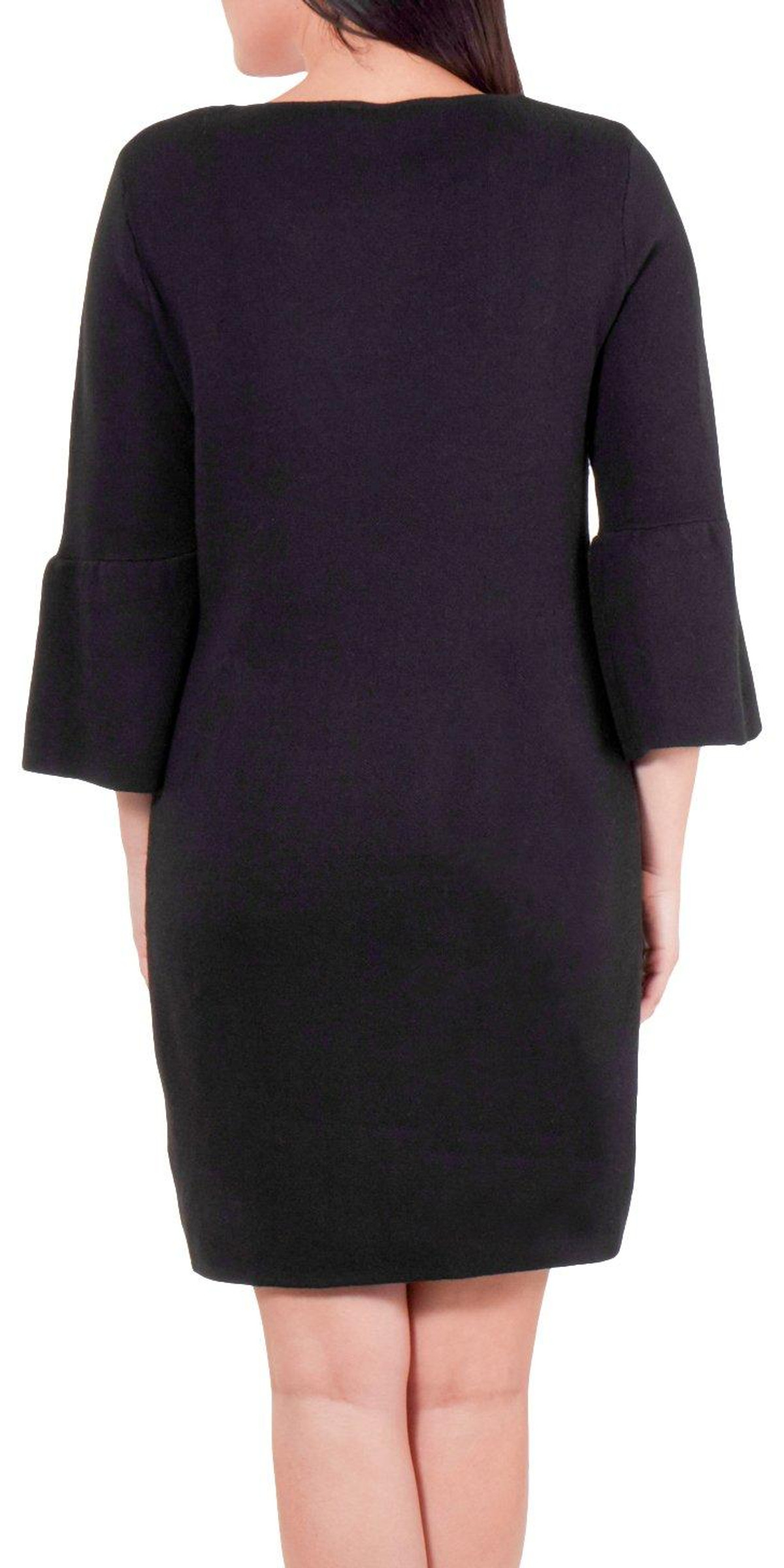 NY Collection Womens Solid Bell Sleeve Sweater Dress