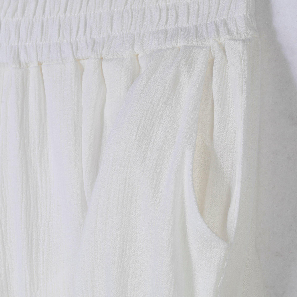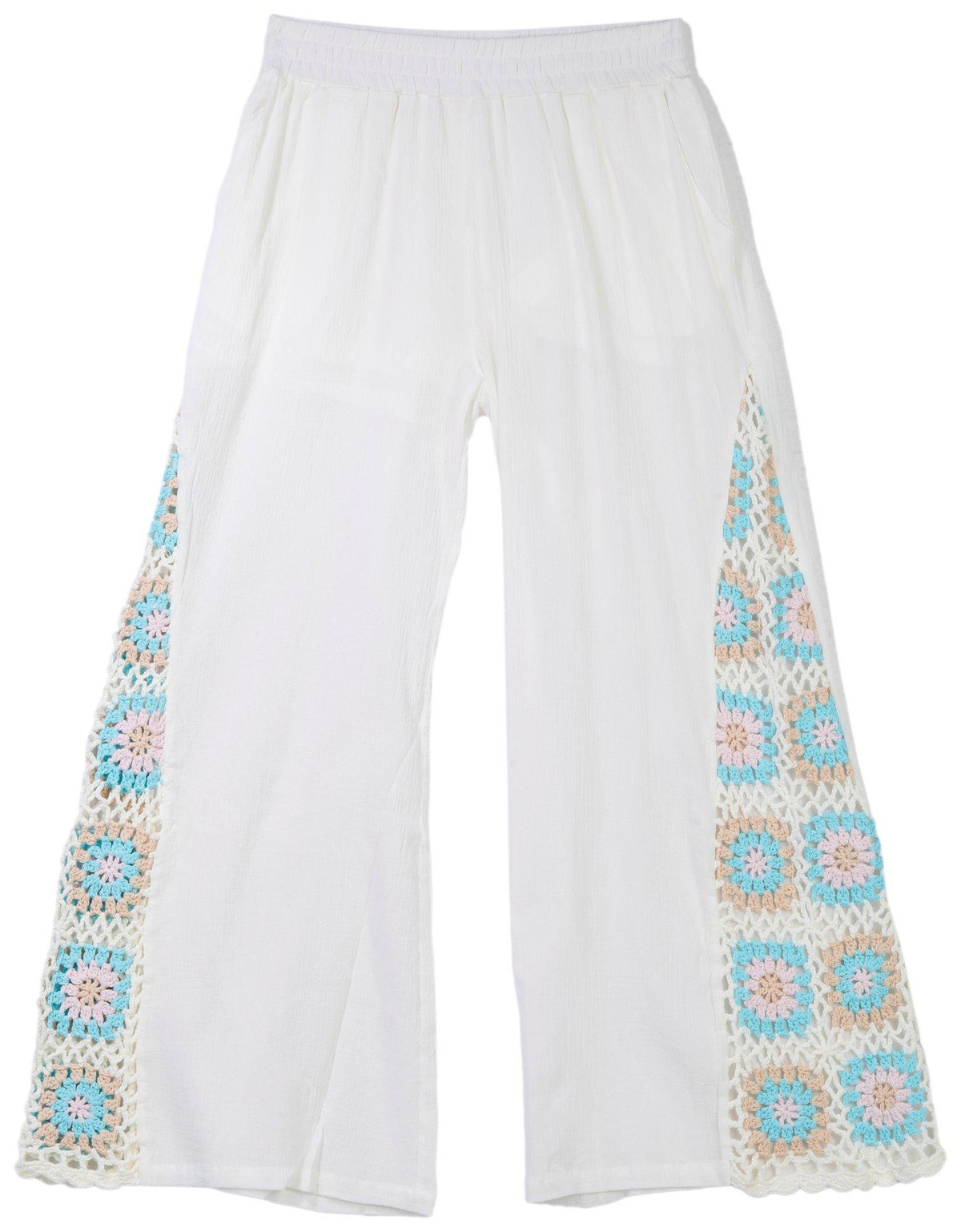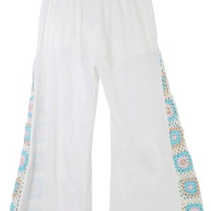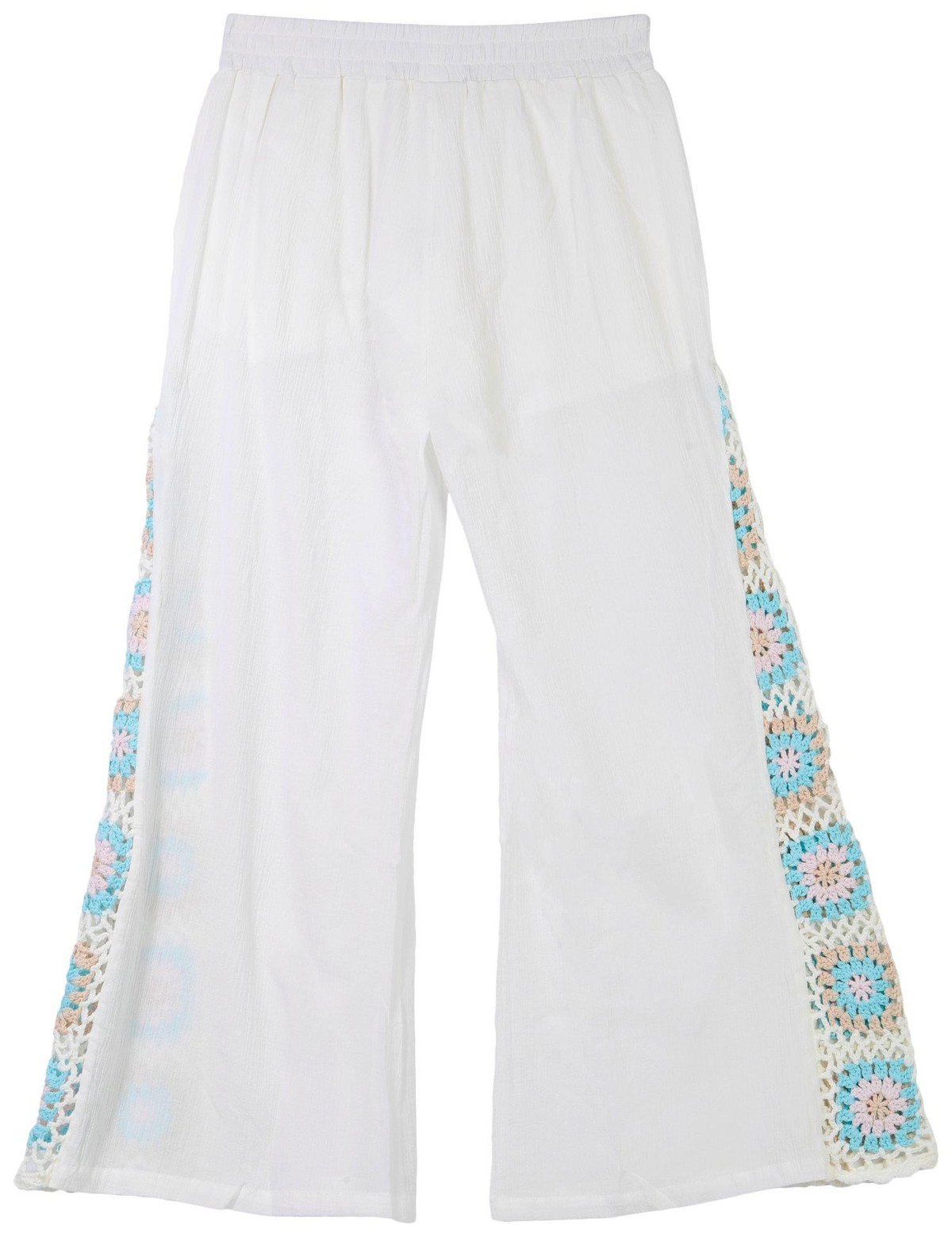 Breeze through your day in the Juniors Crochet Wide Leg Pants. Featuring a stylish crochet design along the sides, side seam pockets, a comfy elastic waistband, and a relaxed wide leg fit, these pants blend boho charm with everyday comfort. Fabrication 100% cotton