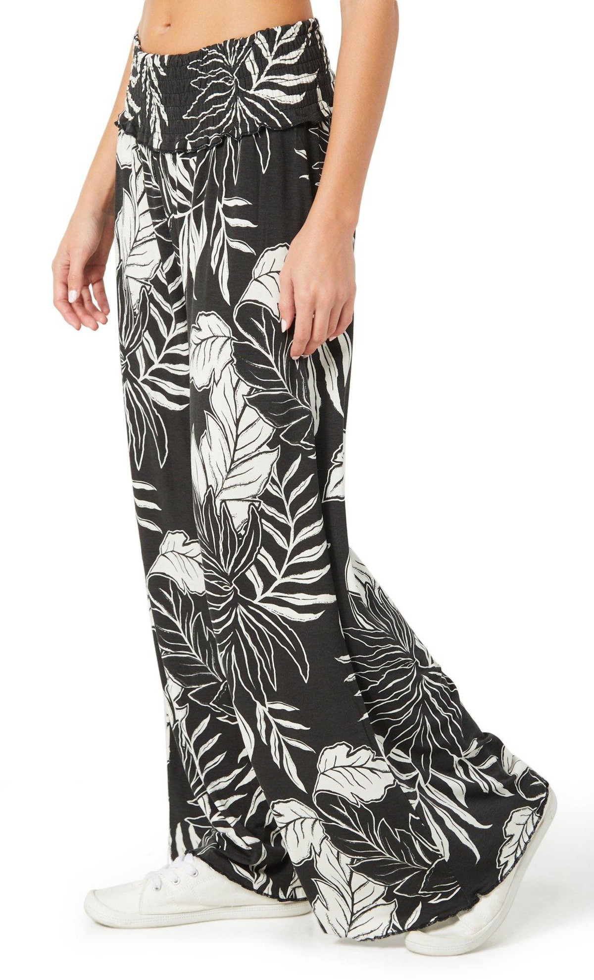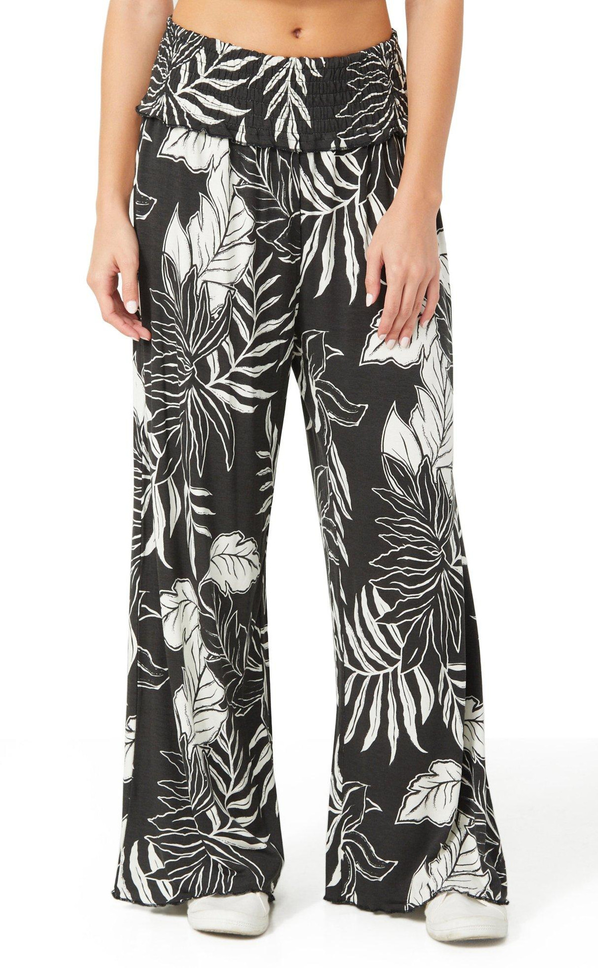 Stay stylish and comfortable in these printed knit wide leg pants from Ocean Drive. Featuring a soft stretch fabric and elastic waistband, they offer a relaxed fit perfect for lounging or stepping out. Bold prints add a trendy touch to any casual look. Fabrication is 95% rayon, 5% spandex.