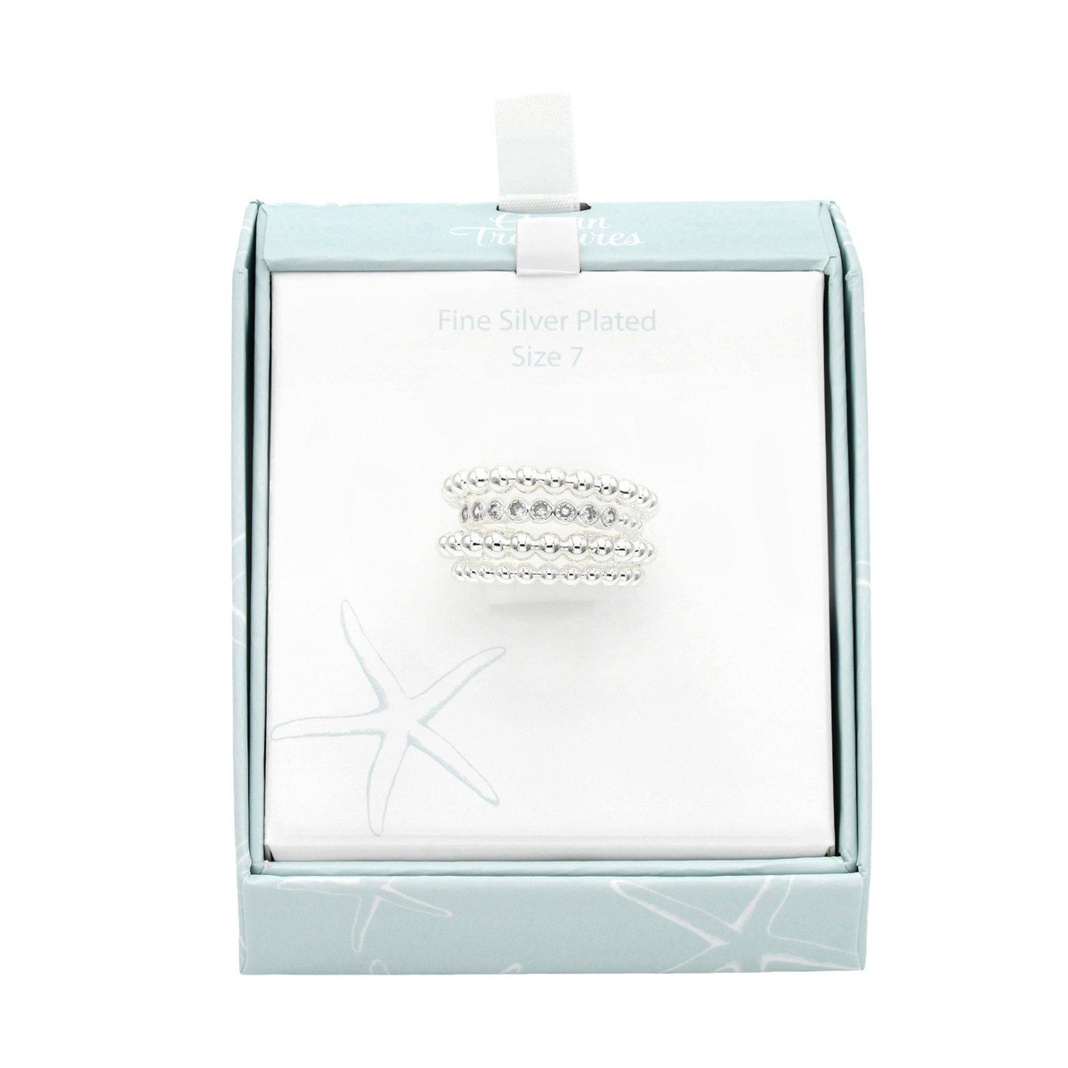 Elevate your look with the Silver Boxed Crystal Round Open Band Ring. Featuring a sleek open band design and sparkling round crystal accents, this modern ring blends elegance with everyday style. Perfect for stacking or wearing solo.
