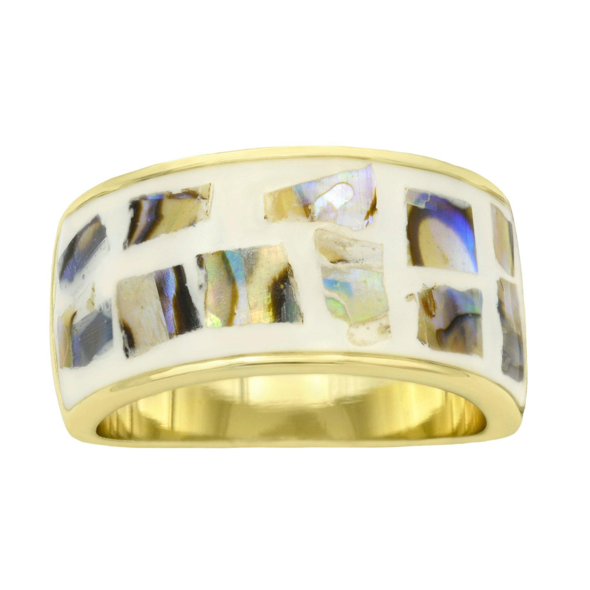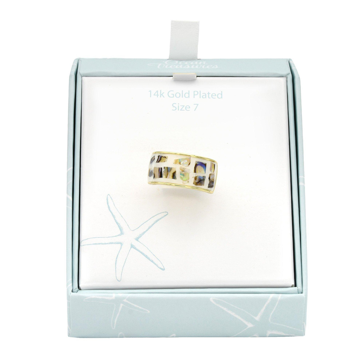 The Ocean Treasures Gold-Tone Stone Inlaid Ring is a striking accessory that combines modern elegance with a chic design. This ring is perfect for both everyday wear and special occasions.