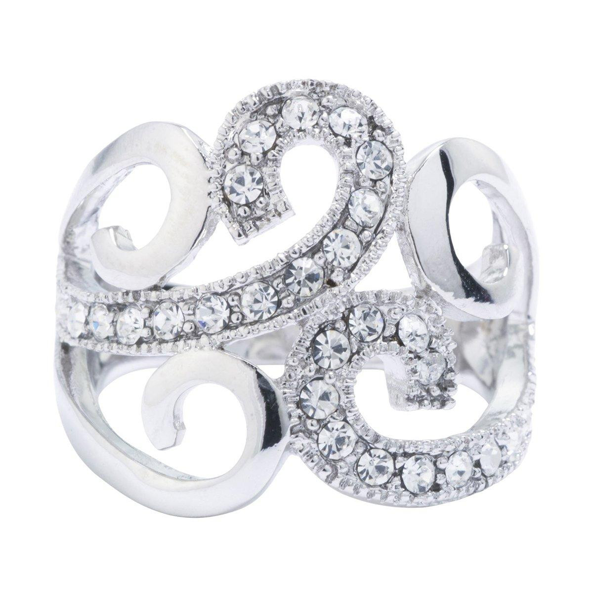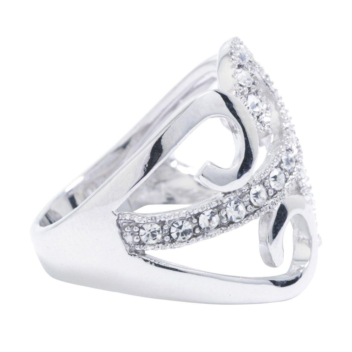 The Swirl Crystal Ring showcases a beautiful, swirling design with sparkling crystals that catch the light with every movement. Its elegant and contemporary style adds a touch of sophistication and charm to any outfit. Perfect for special occasions or everyday wear, this ring makes a stunning statement.