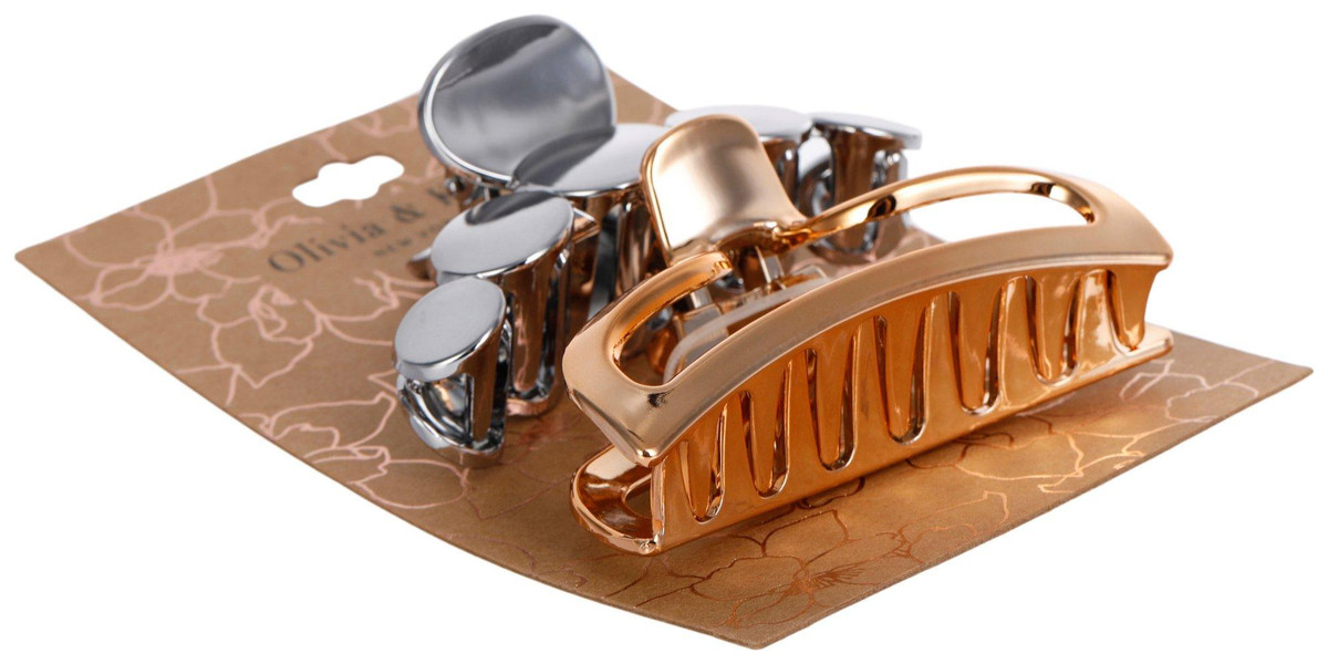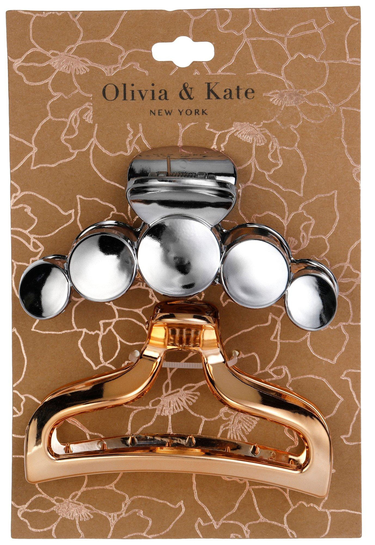 The Olivia & Kate 2pc Claw Clip Set includes one gold and one nickel-toned clip, offering a sleek and versatile look for any hairstyle. These stylish hair accessories are perfect for everyday wear or elegant updos, providing a secure grip and timeless finish. Designed to pair effortlessly with any outfit, this set is a must-have for women who love functional and fashionable hair clips.