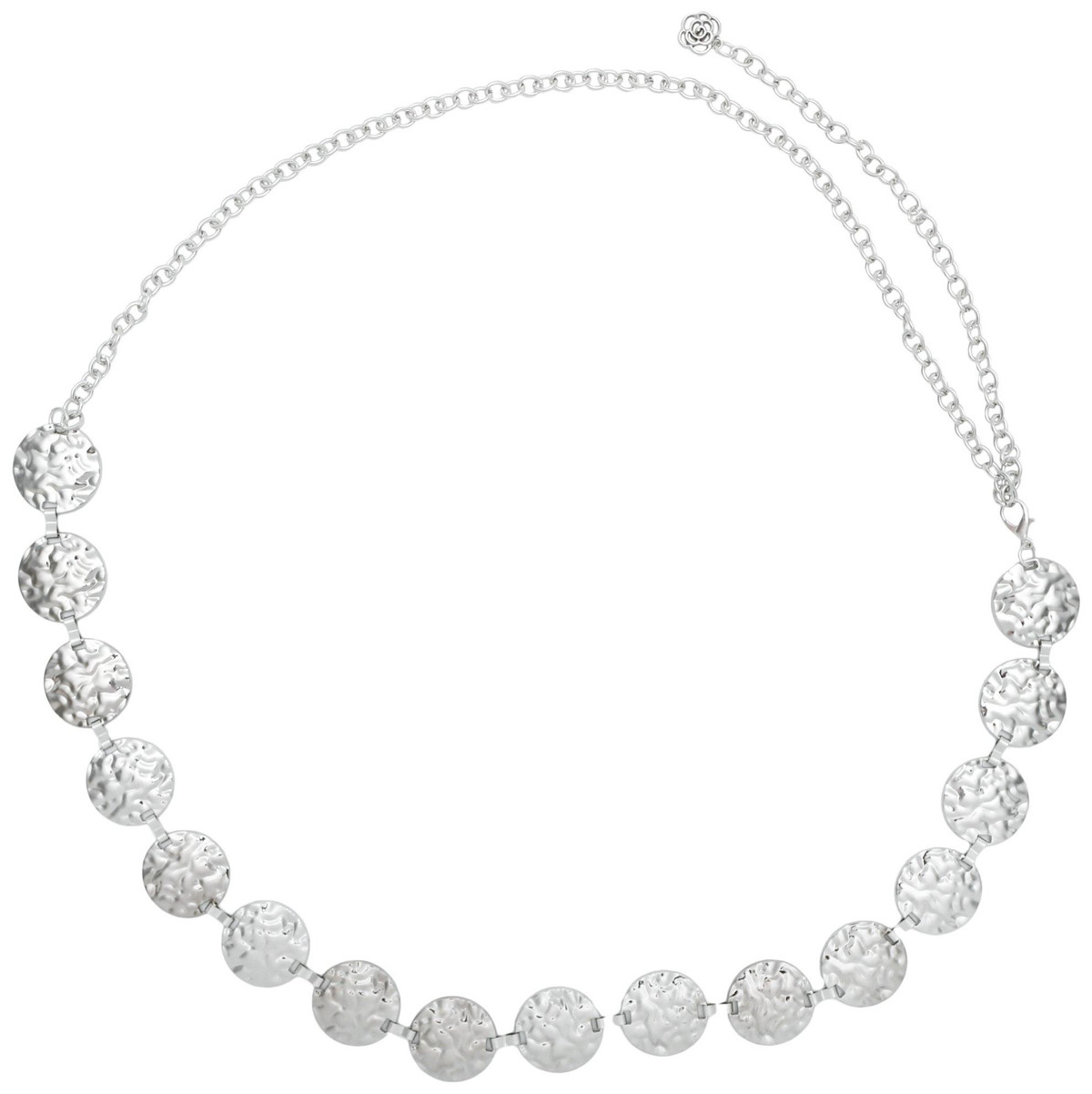 Stylish and versatile silver disc chain belt. Perfect for cinching dresses or adding edge to jeansyour go-to accessory for a polished look.