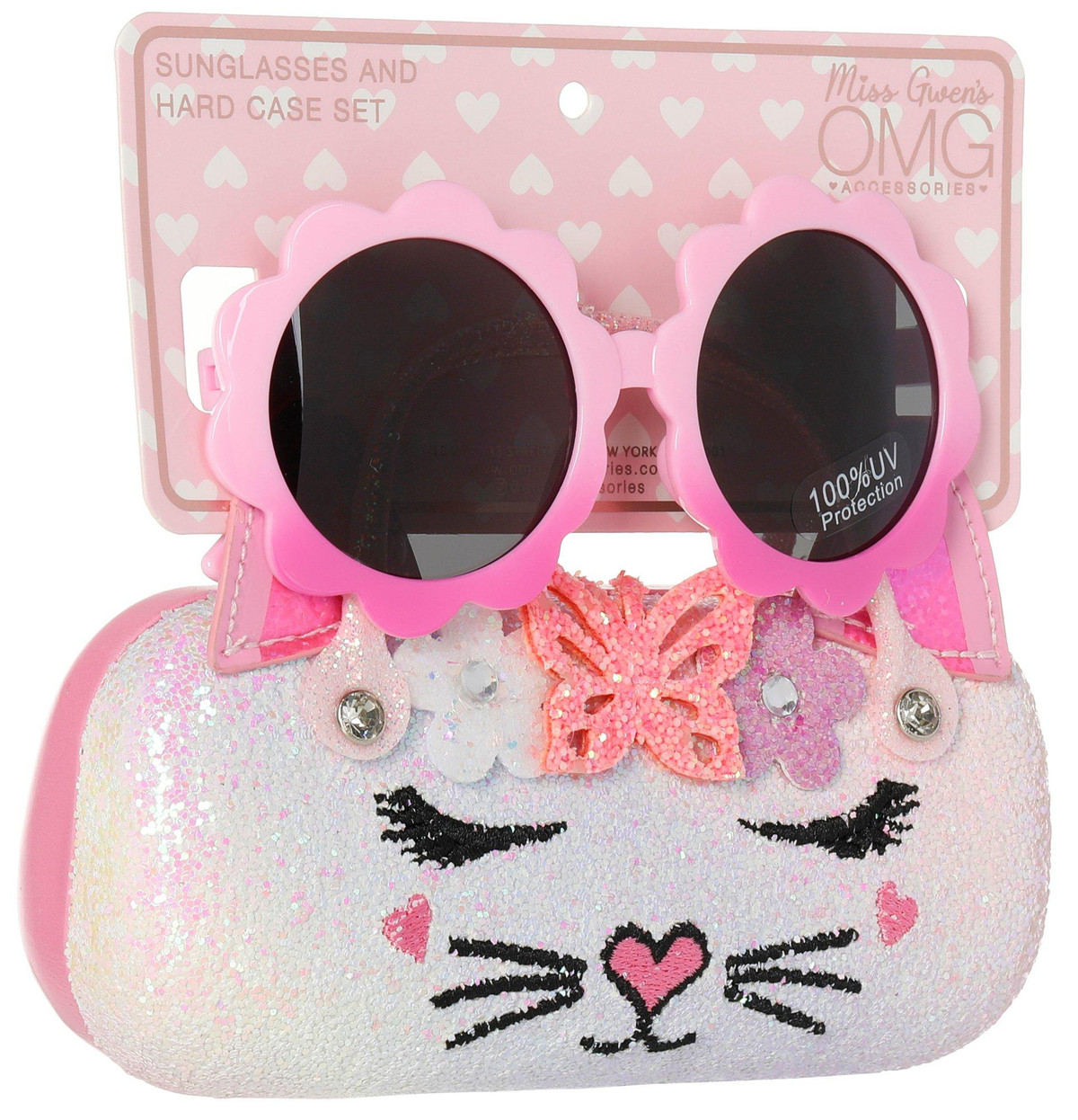 Add a touch of fun and protection to your sunny days with the Girls 2 Pc Sunglasses Set. This adorable set includes a pair of floral-shaped sunglasses that offer 100% UV protection, ensuring your eyes stay safe from harmful rays. The set also features a glittery cat-shaped glasses case with handles, perfect for keeping your sunglasses secure and stylish.