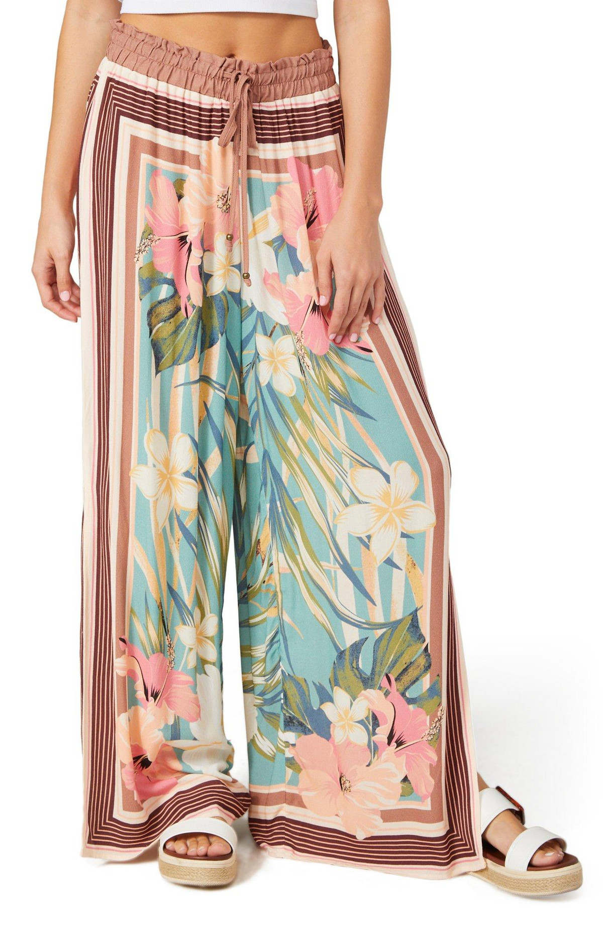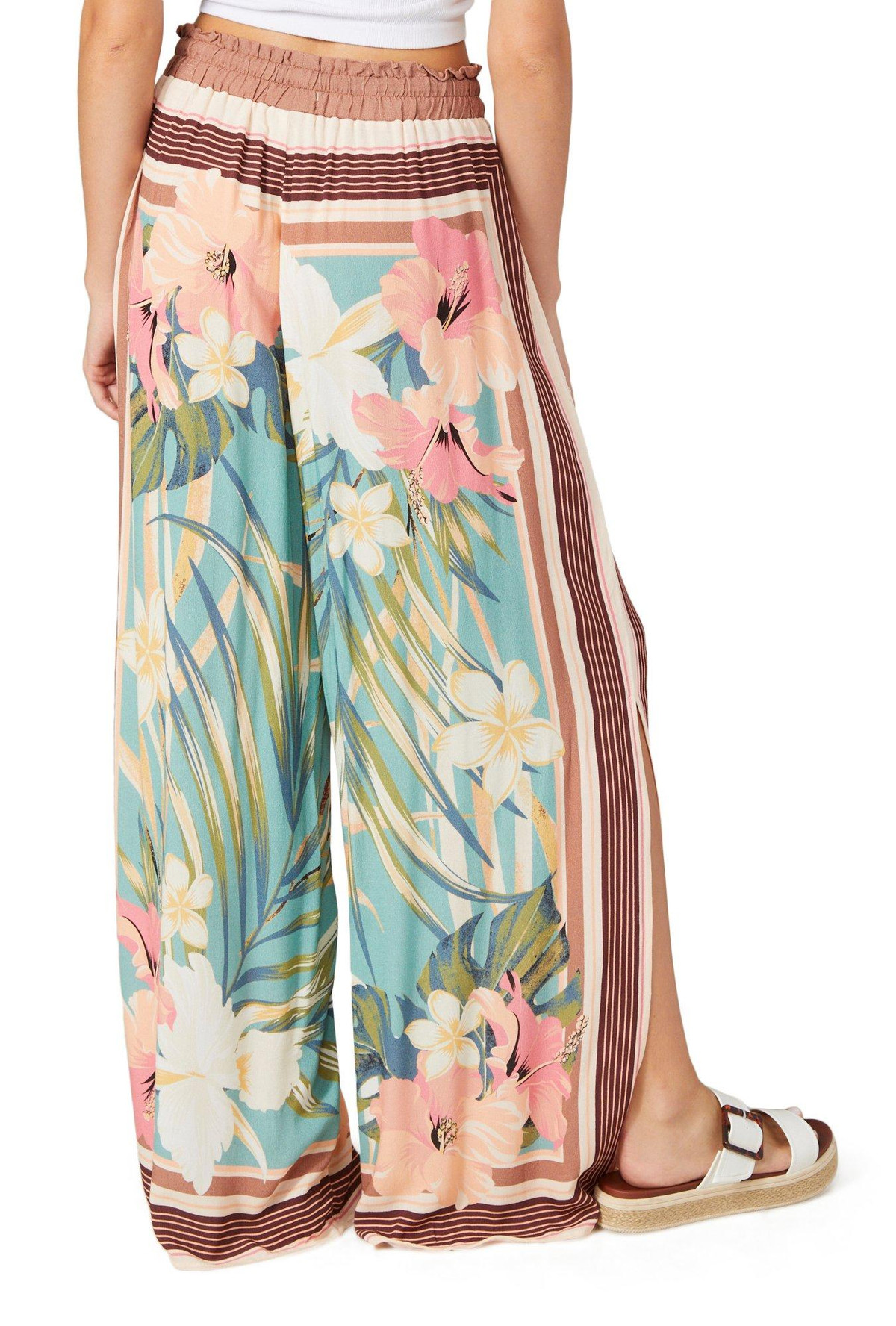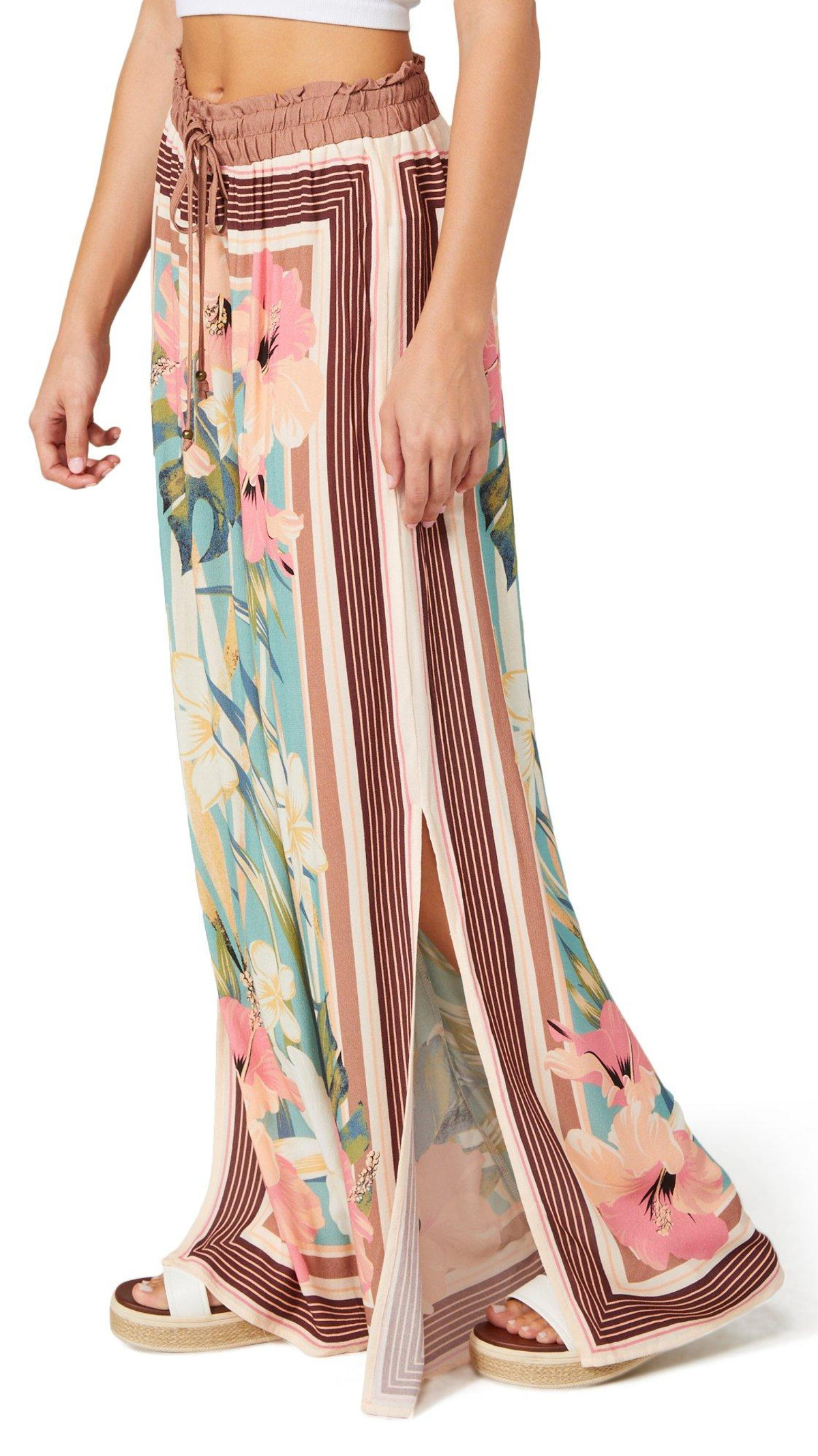 The Juniors Floral Wide Leg Pants offer breezy comfort with a lightweight feel and vibrant floral print. Featuring a relaxed wide leg fit and a 29 inch inseam, these pants bring effortless style to warm weather looks. Fabrication 100% viscose